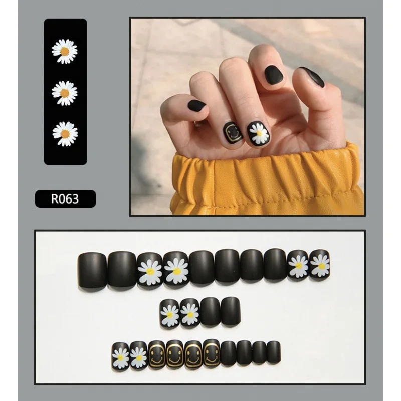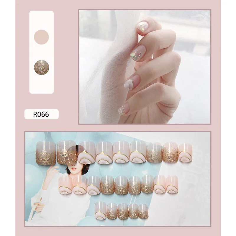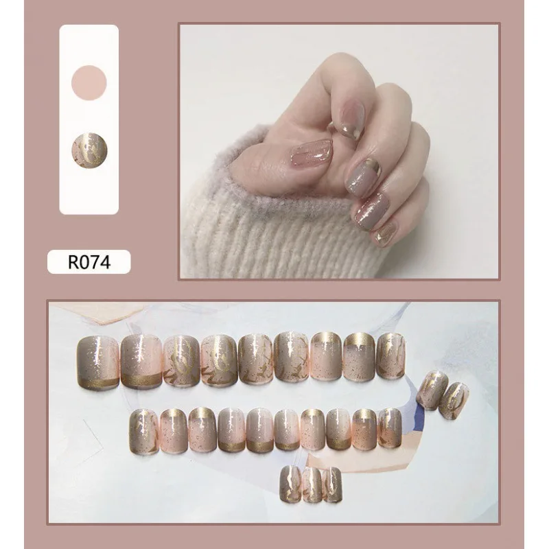 Новинка 2022, 24 шт.компл., милые дизайнерские накладные ногти с ри...