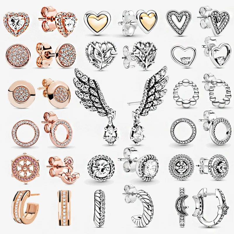 Charmsy Pan-Style 925 пробы серебряные серьги, новая циркониевая ст...