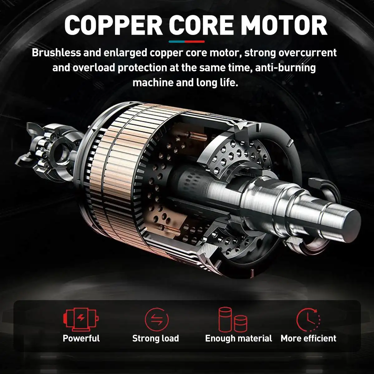 4. Бесщеточный двигатель устраняет углеродную щетку, что делает мотор BL работать при более низкой температуре, более высокой эффективности и более длительный срок службы