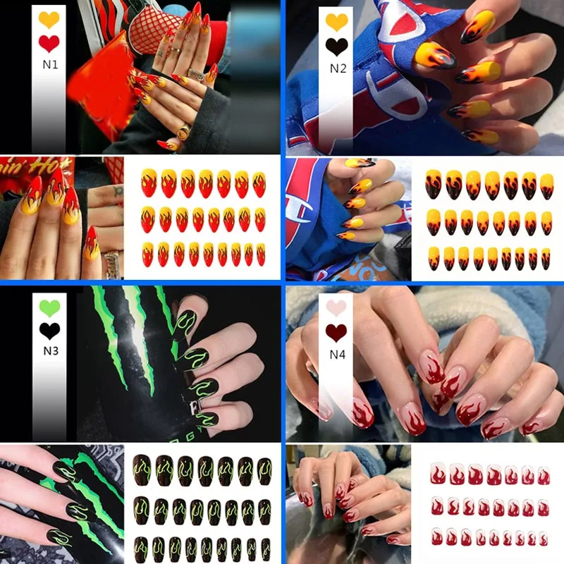 24 шт., декоративные накладные ногти с клеем, 4 рисунка