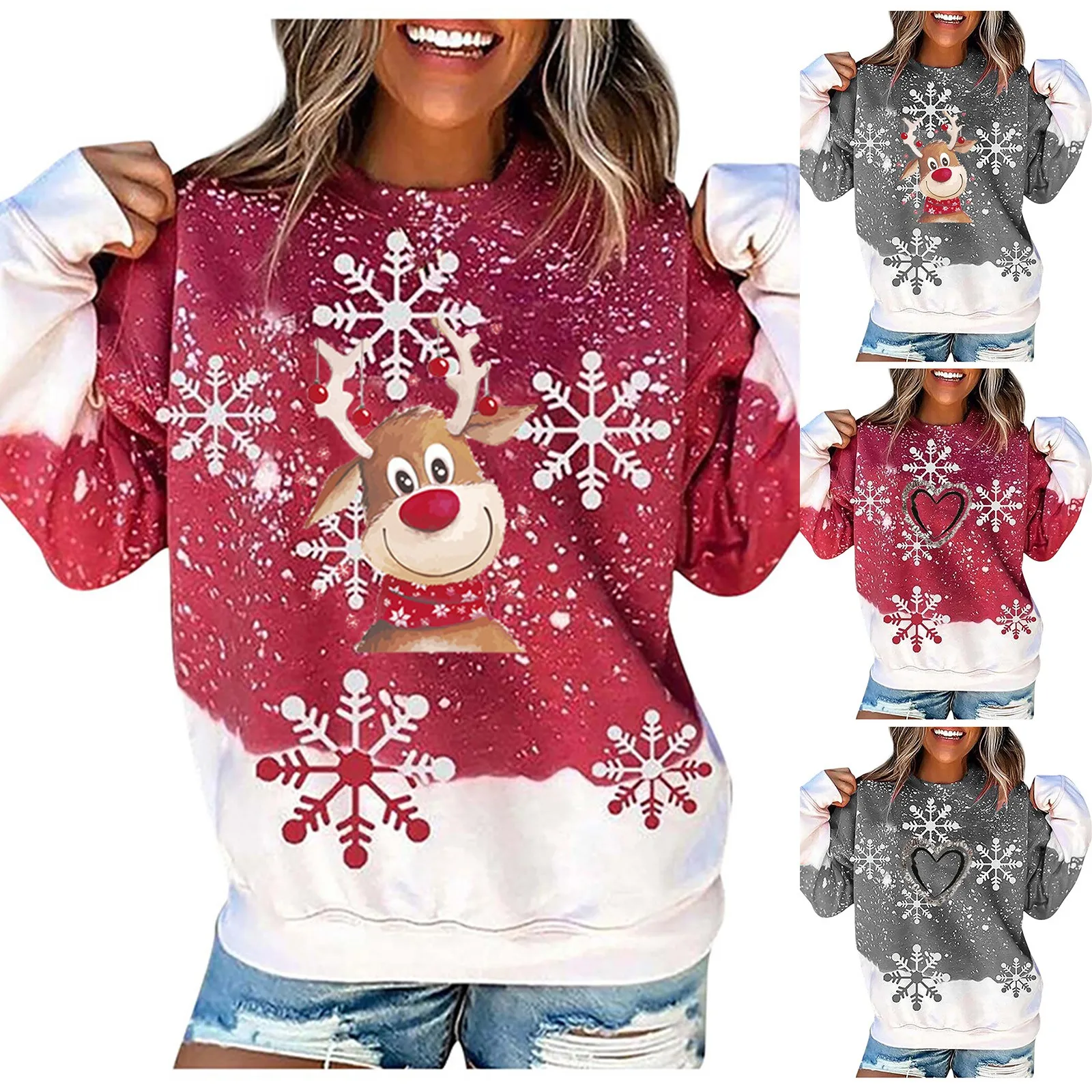 Женская Повседневная Свободная Толстовка с круглым вырезом и длинными рукавами с принтом оленя на Рождество