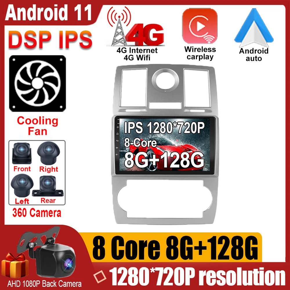 Беспроводной Carplay Android 11 для Chrysler 300C 1 2004-2011 1280*720P IPS экран Автомобильный Радио плеер GPS навигация мультимедийный видео