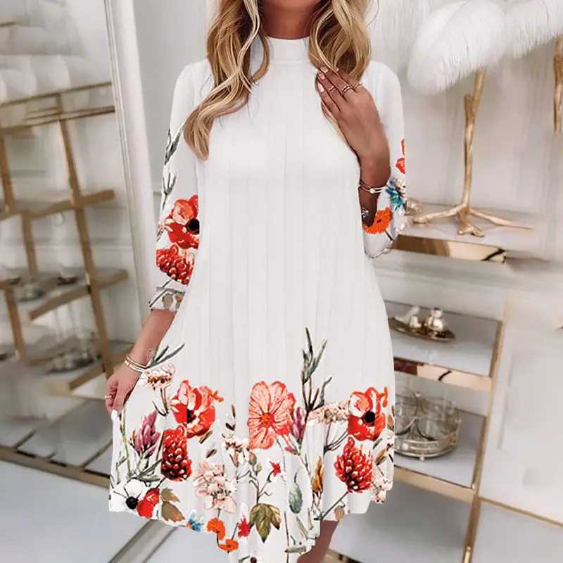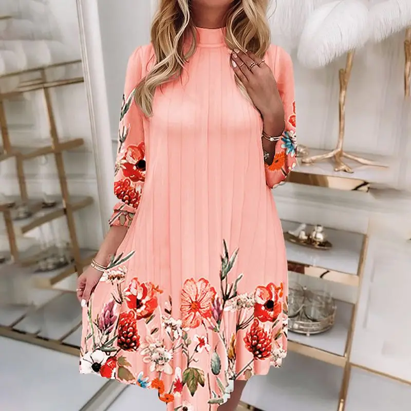 ZANZEAосенний элегантный сарафан с цветочным принтом, модное женское платье до колена с длинным рукавом, плиссированное праздничное платье, вечерние платья