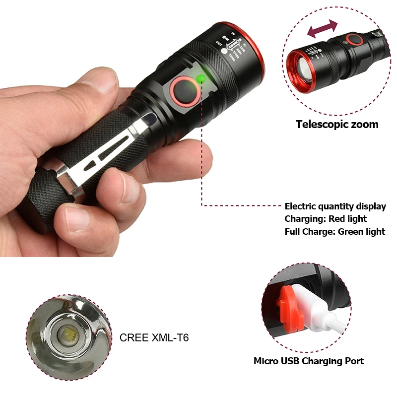 Светильник СВЕТОДИОДНЫЙ фонарь XM-L T6, фонарь с аккумулятором 18650, лм, алюминиевый водонепроницаемый 3-режимный фонарь для велоспорта Z70