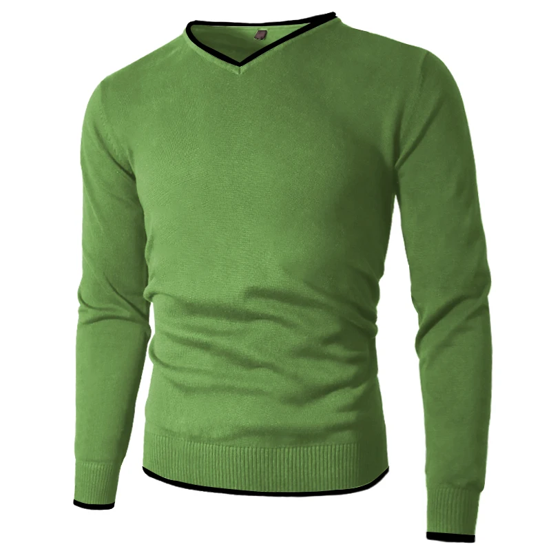 Мужской однотонный трикотажный свитер с V-образным вырезом