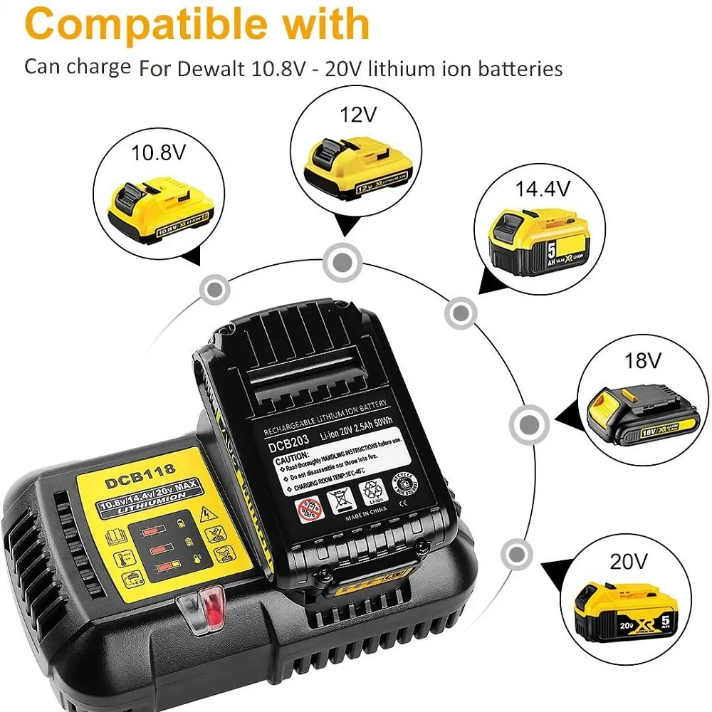 2021 DCB118 быстрое зарядное устройство 14,4 а для Dewalt 12 В в 20 в DCB200 DCB101 литий-ионный Электрический инструмент портативная вилка высокой мощности для ЕССША