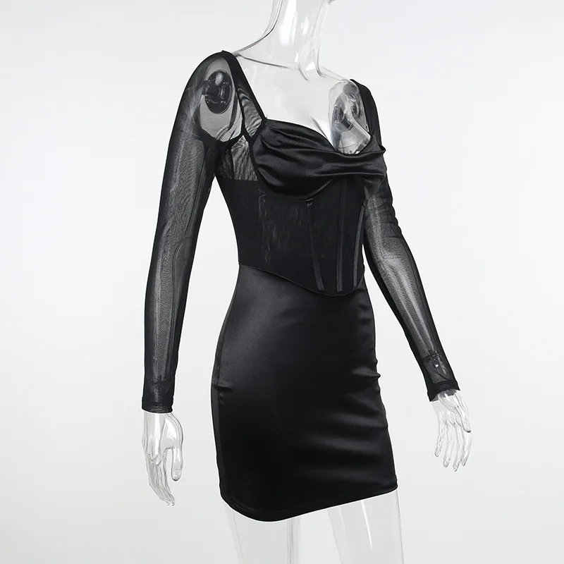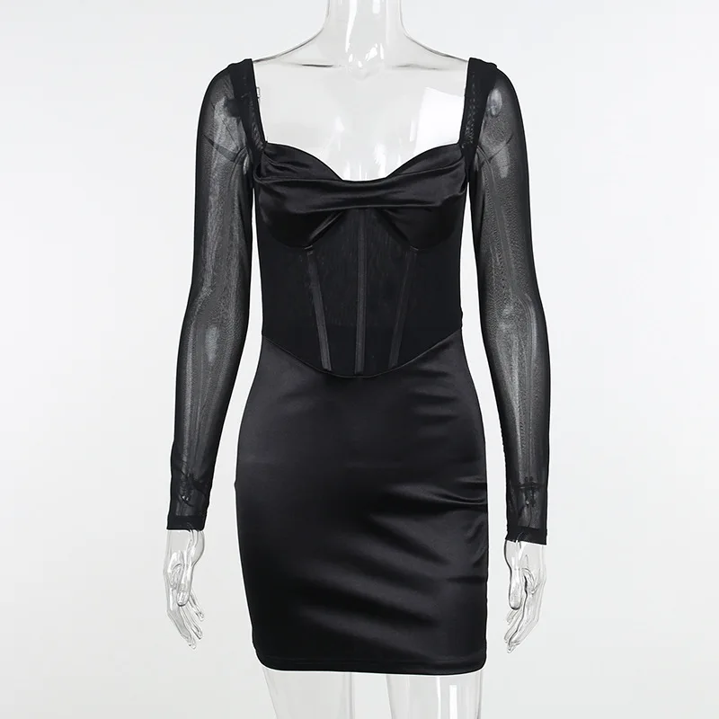Платье wsevypo женское с длинным рукавом, элегантное облегающее Сетчатое мини-платье с квадратным вырезом, цвет черный, осень