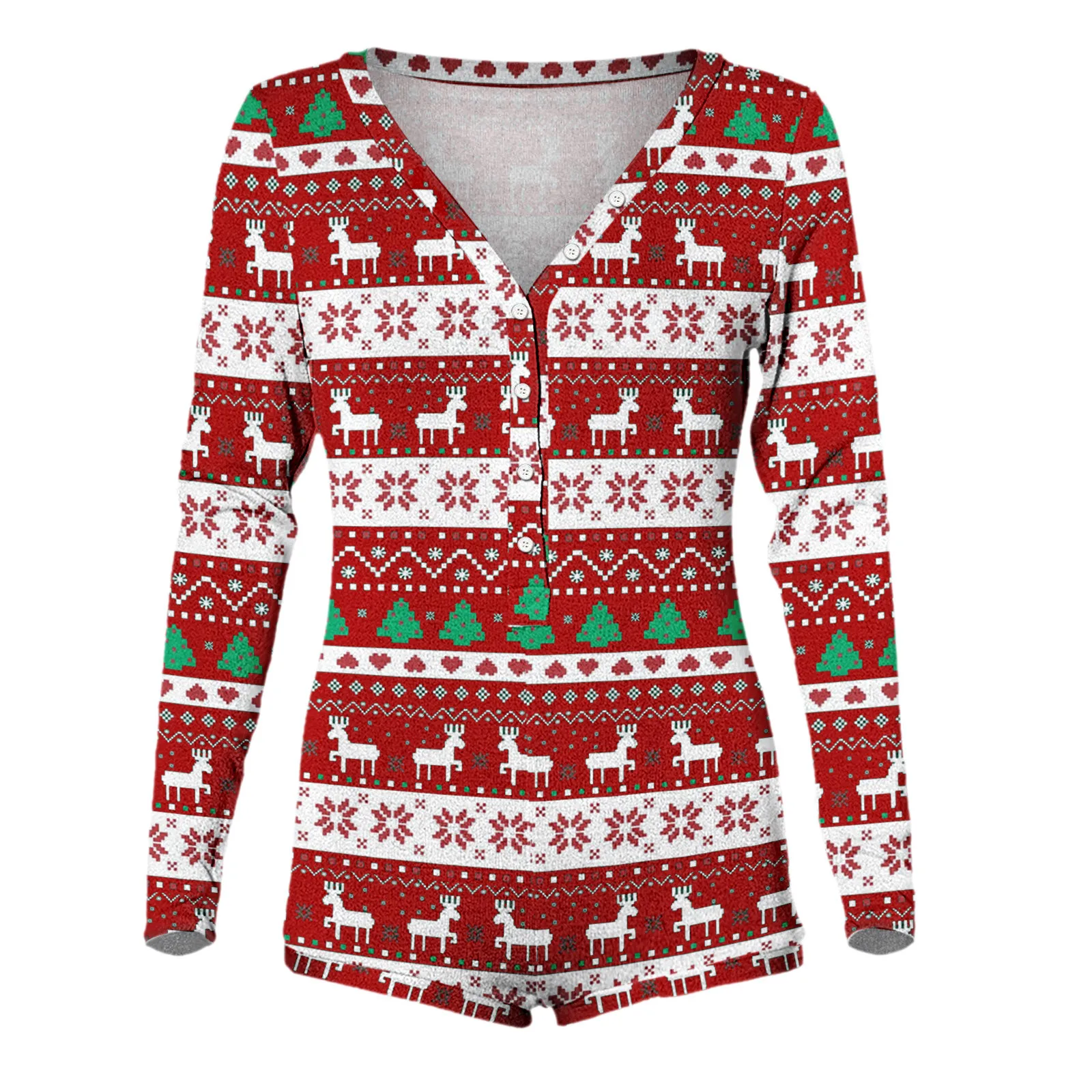 Женский Рождественский комбинезон с длинным рукавом и принтом