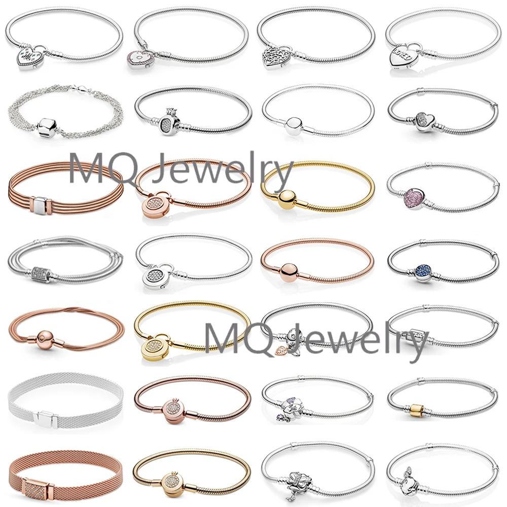 Браслет с подлинными моментами, серебро 100% пробы, сверкающее серд...
