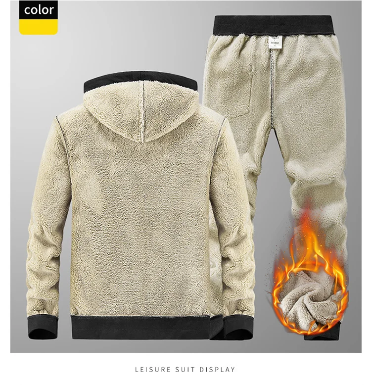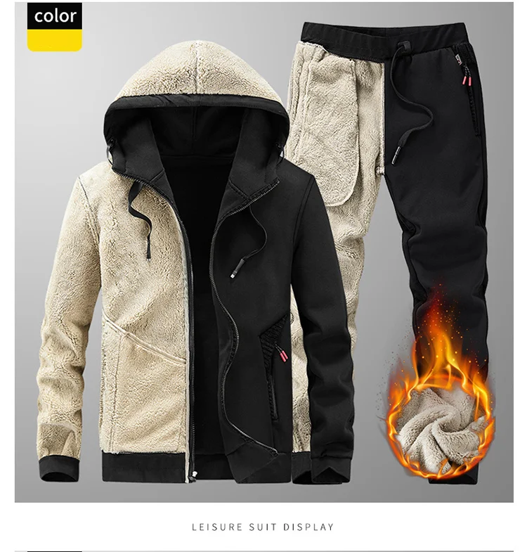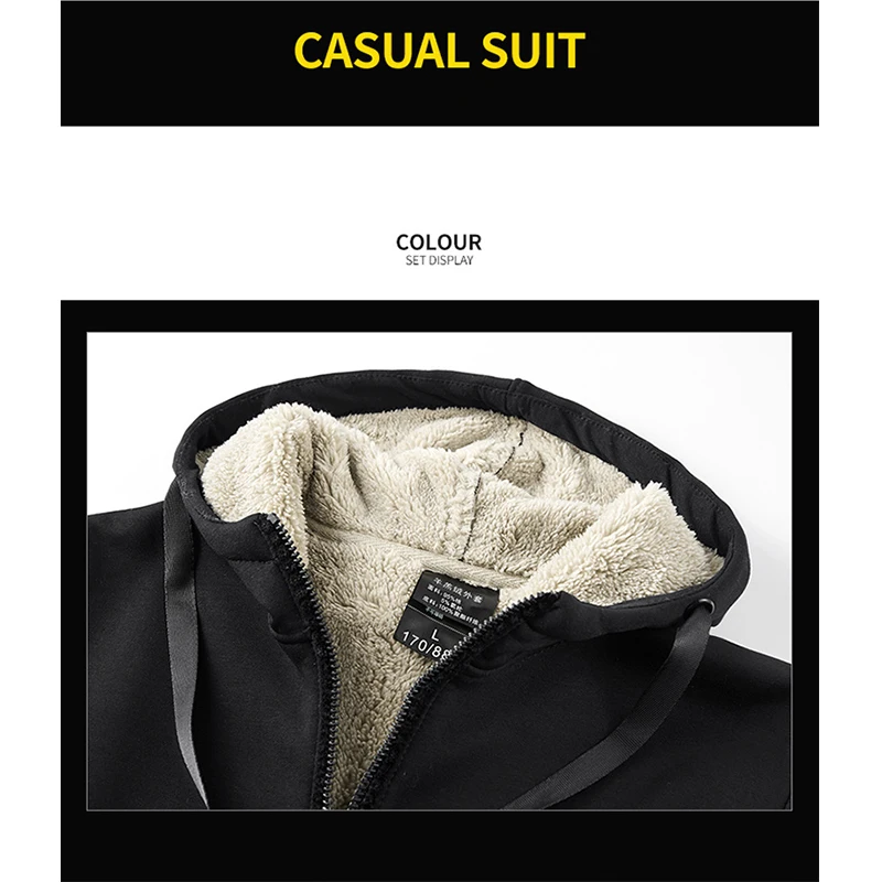Мужской зимний флисовый спортивный костюм, толстовка с капюшоном и ...