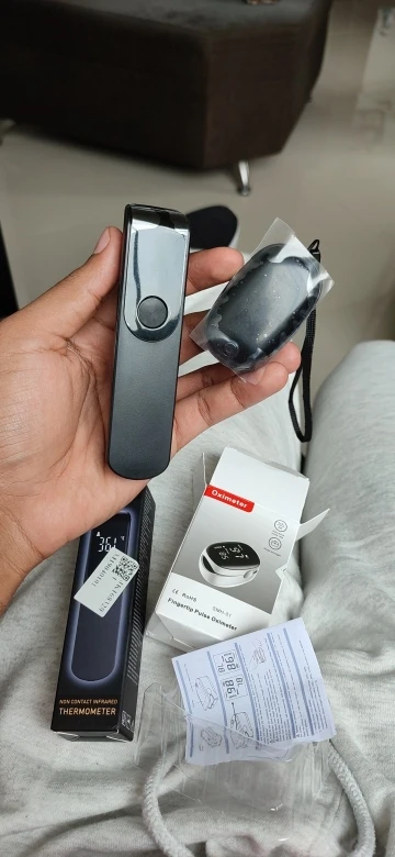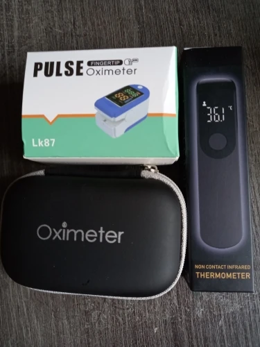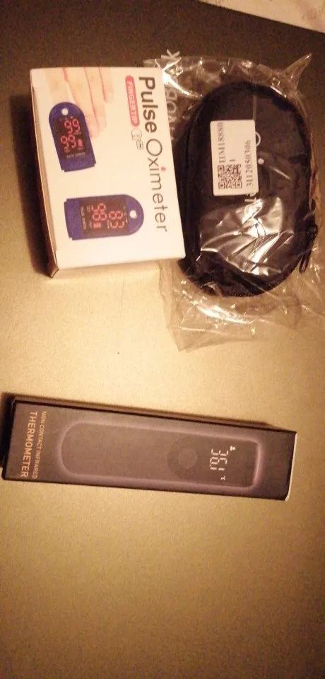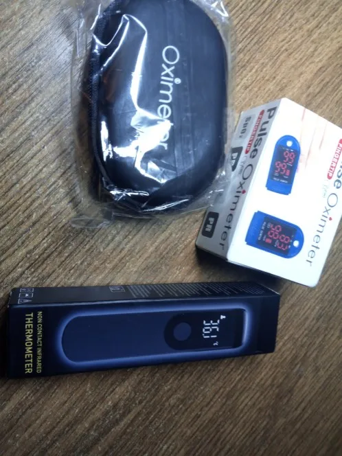 Посылка прибыла вовремя, но коробки прибыли поврежденными, к счастью, предметы в порядке. Термометр маленький с одним кнопкой, чтобы принять температуру и сделать конфигурацию. Оксиметр лучшего качества и размера. На данный момент работает две вещи...