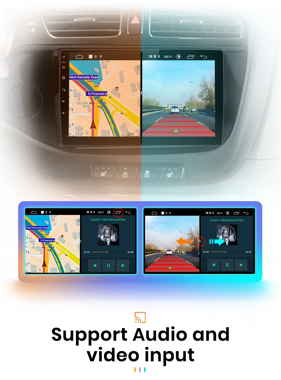 Вы можете использовать навигацию и другие приложения одновременно, такие как прослушивание музыки или включение функций ADAS и т. Д.