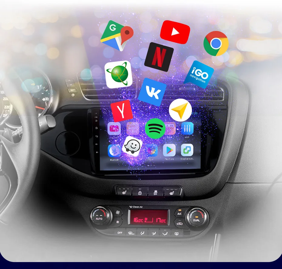 YouTube, VK, Twitter, Skype, Facebook, Messenger, Linkedln,Navitel, IGO навигация, Spotify, Yandex, Yandex карта,Waze, Google, Google Map, Netflix, Instagram