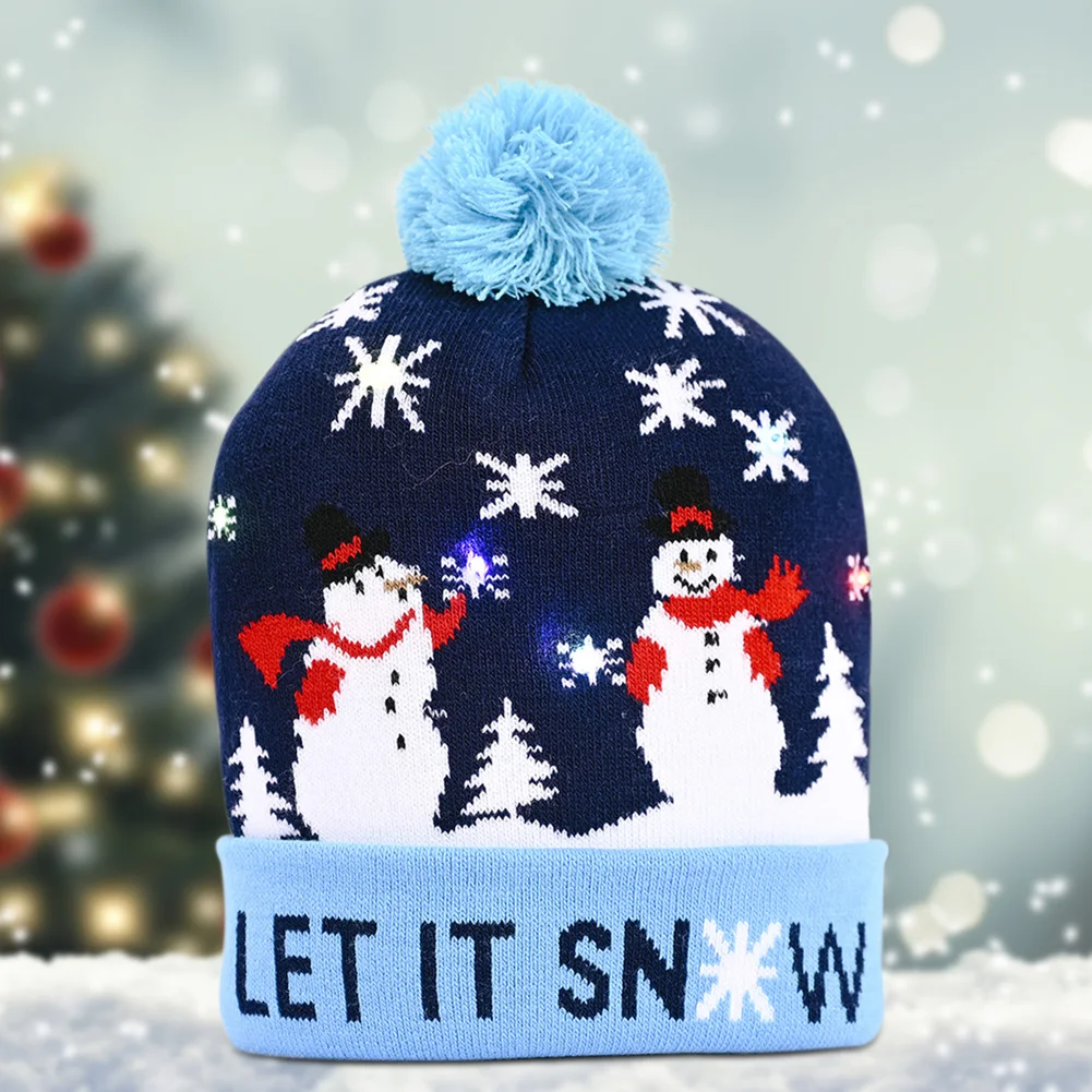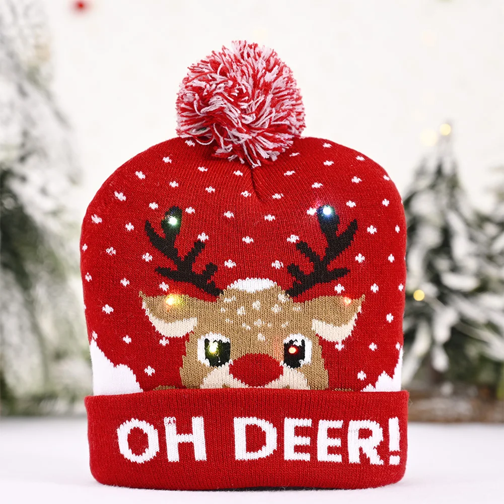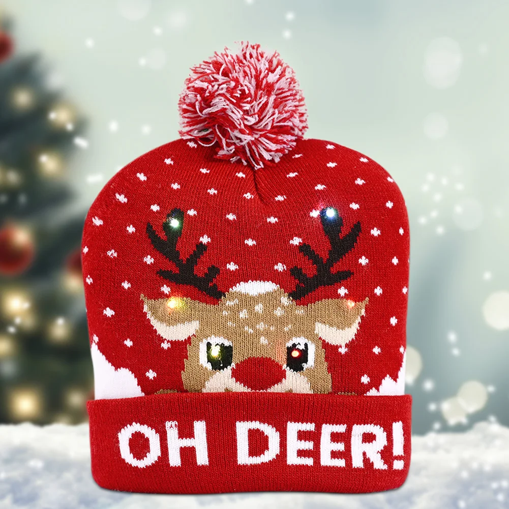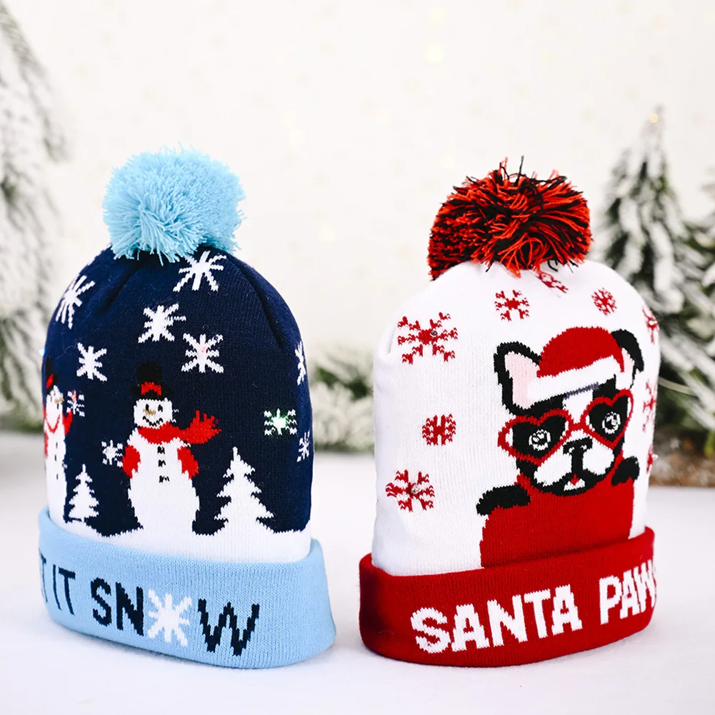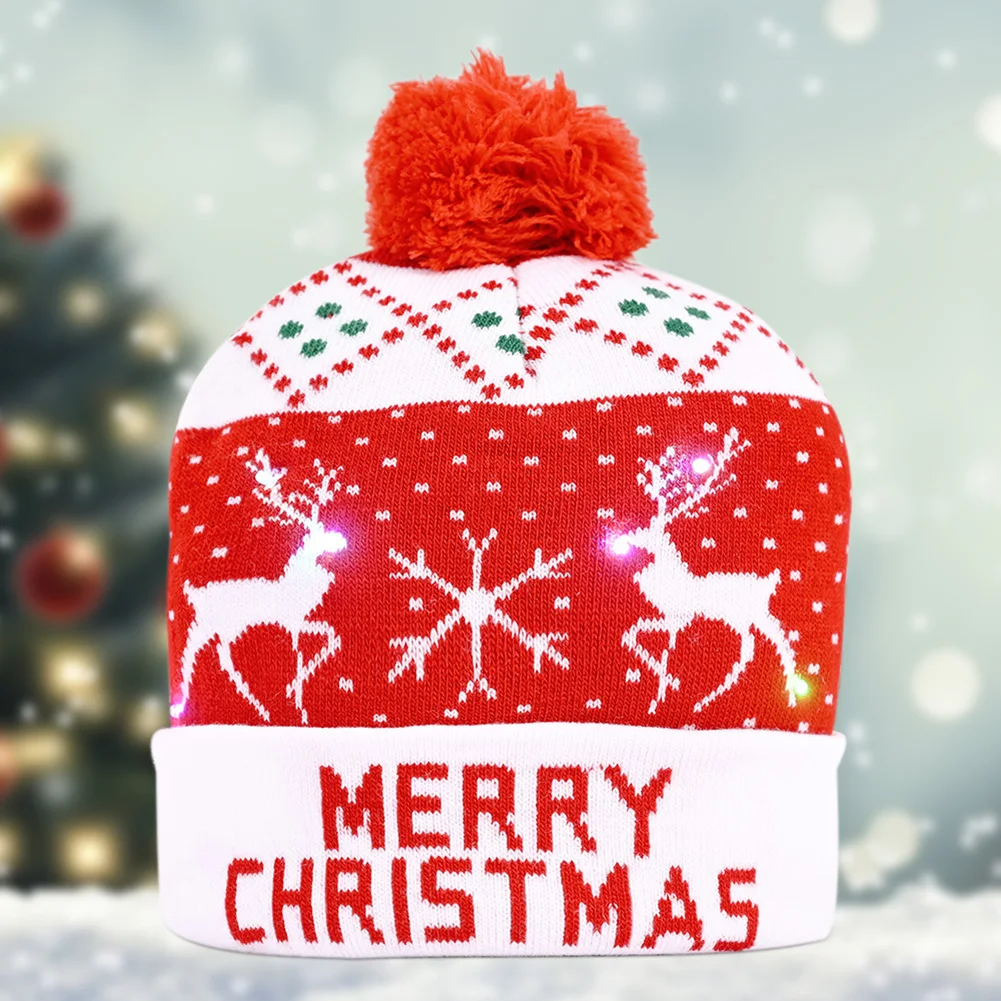 Рождественское украшение, светодиодные вязаные рождественские шапки, Шапка-бини светильник кой, теплая шапка для детей и взрослых, новогодние и рождественские украшения