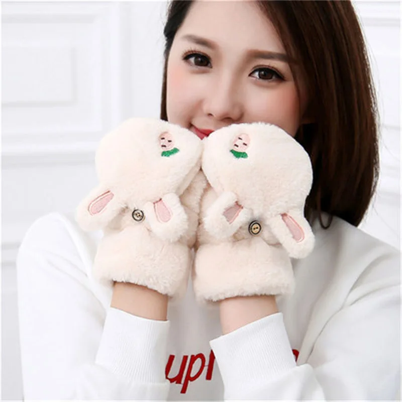 Женские Мультяшные милые зимние плотные теплые перчатки из кроличье...