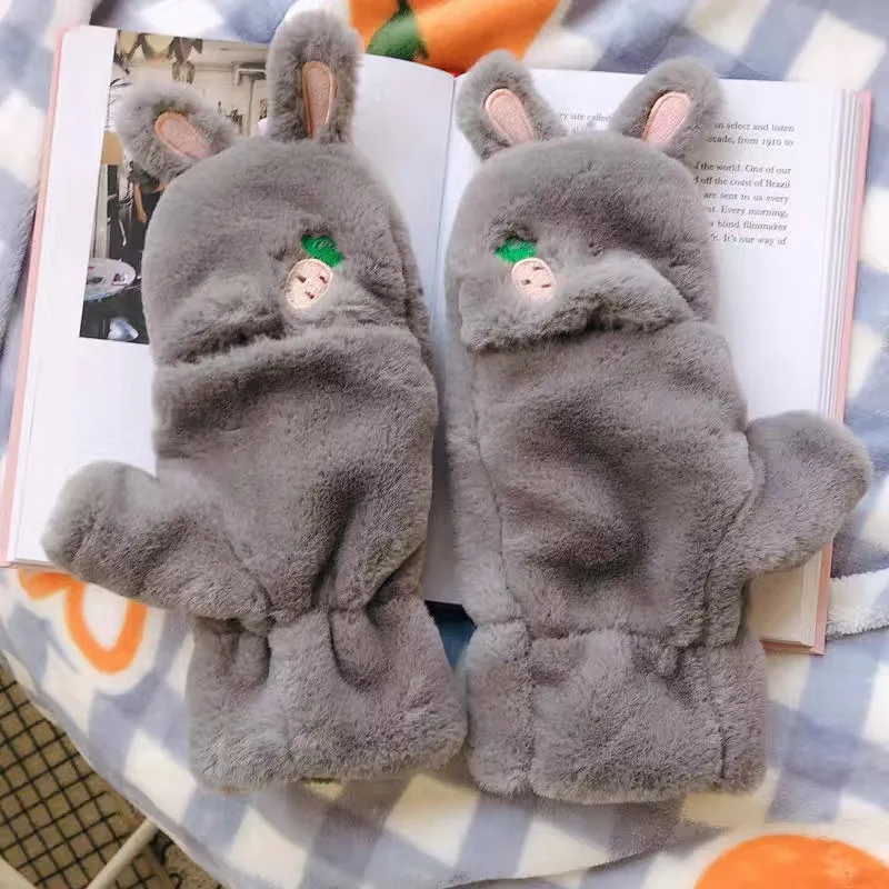 Женские меховые варежки, перчатки с откидной крышкой, плюшевые утепленные варежки без пальцев, зимние уличные перчатки с животными, Женские варежки для девочек