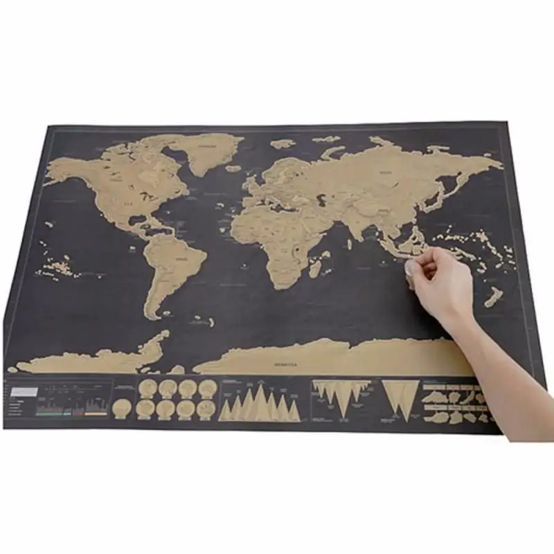 Черная Карта путешествий по миру, карта с царапинами, персонализированная стираемая карта мира без трубки, креативное украшение, наклейки на стену, 1 шт.