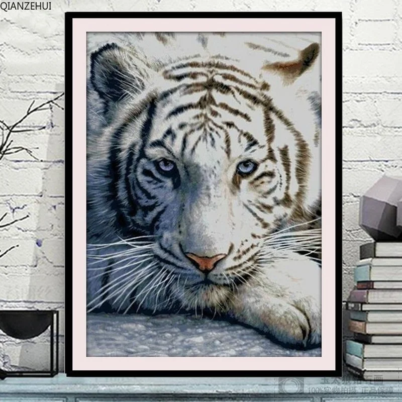 QIANZEHUI, алмазная 5D Вышивка своими руками, Круглый Алмаз Лес белый тигр полная Стразы 5D алмазная живопись вышивка крестиком