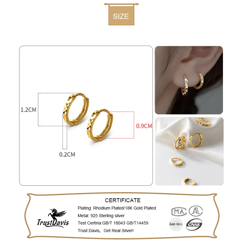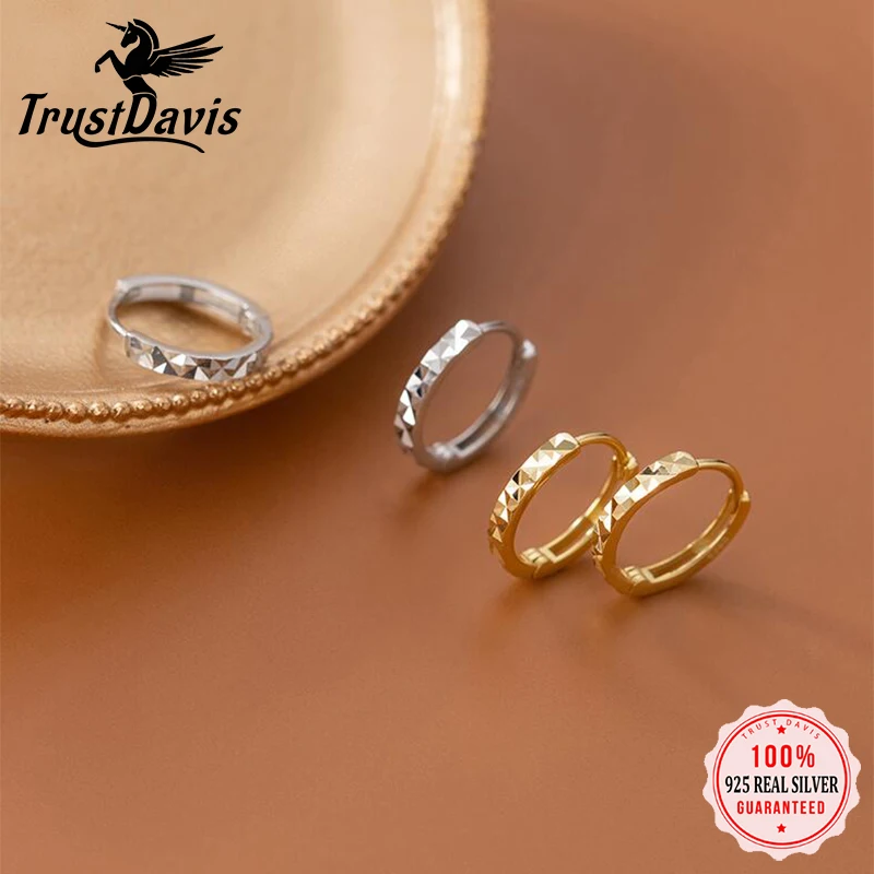Trustdavis 925 Стерлинговое Серебро минимализм геометрические граненые серьги-кольца для модных женщин мужчин модные ювелирные изделия в стиле панк DA2679