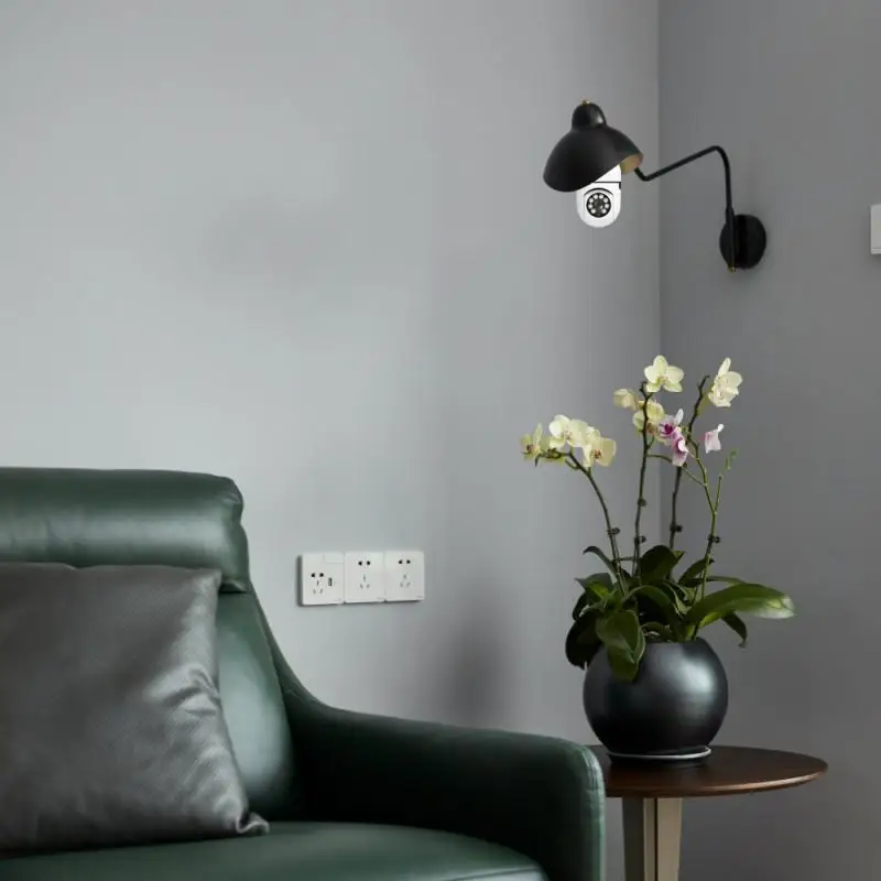 5. Установка очень проста, может использоваться обычный бытовой держатель лампы E27, настоящая беспроводная камера наблюдения, без проблем с проводкой.