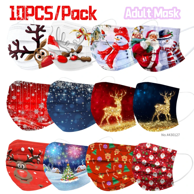 10 шт, рождественские взрослых мульти-принты дышащая 3-Слои одноразовые маски