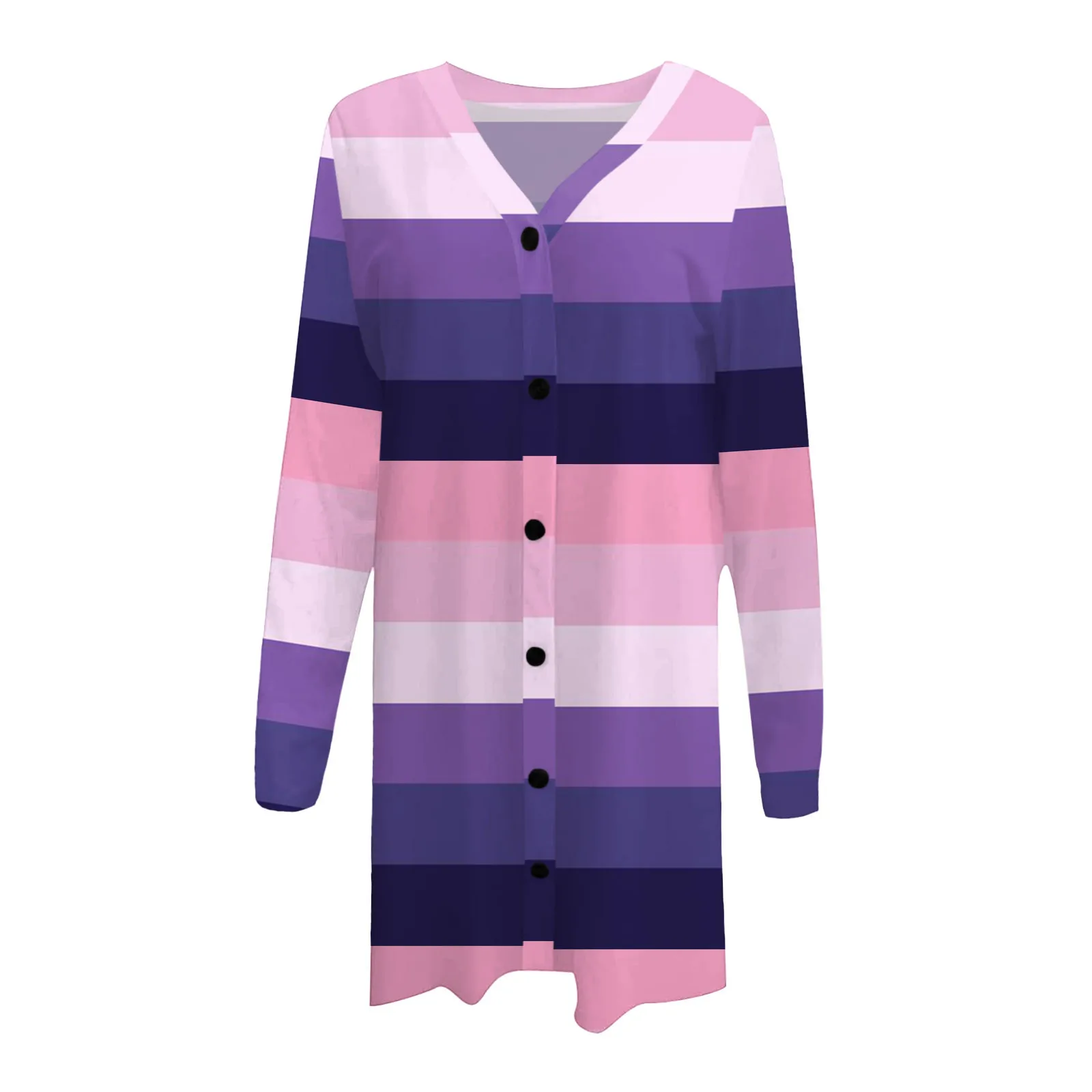 Женский вязаный кардиган на пуговицах, Повседневная клетчатая Свободная куртка в полоску с длинным рукавом и V-образным вырезом, верхняя одежда, осенне-зимняя женская одежда