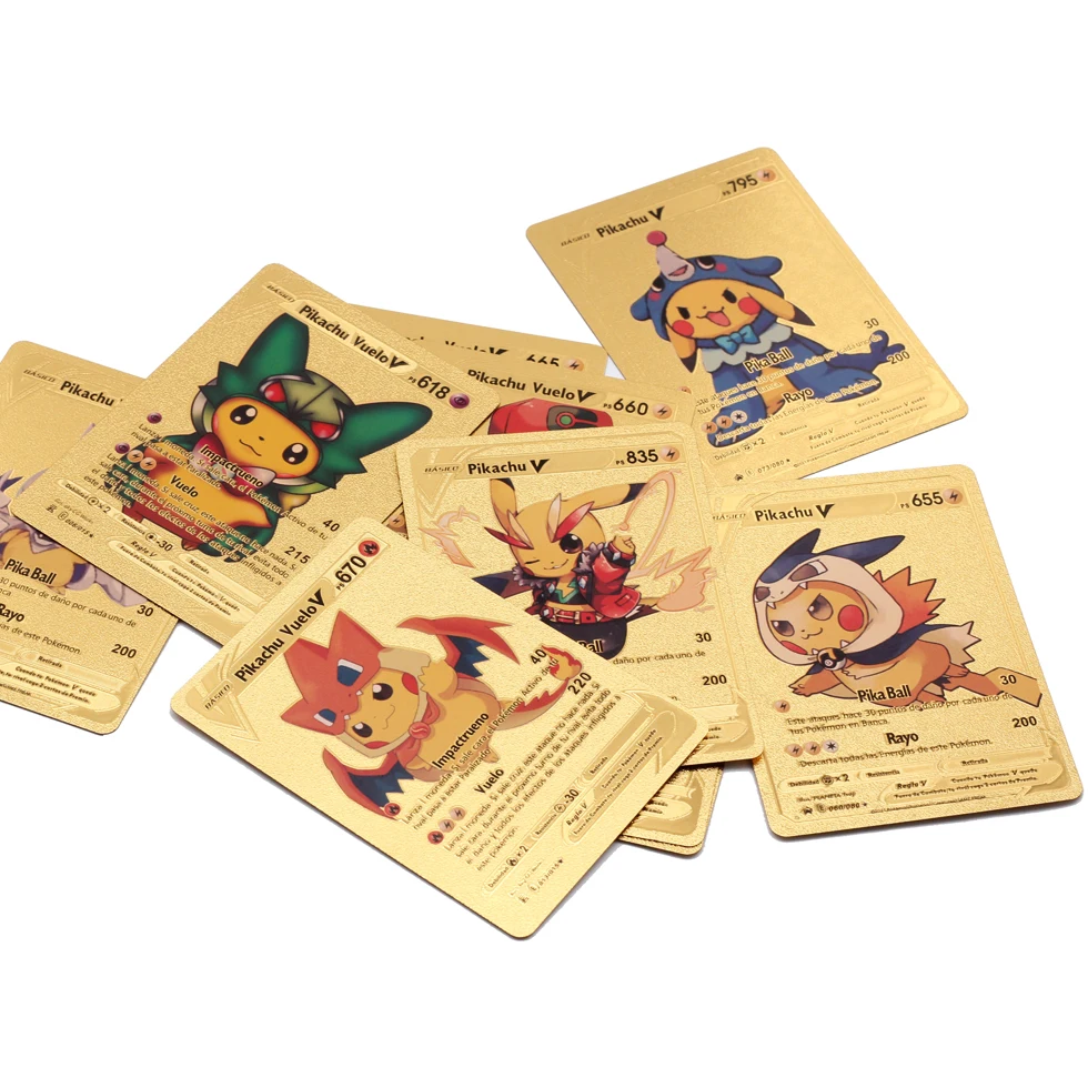 Железная коробка с испанской вспышкой, золотые металлические игровые карты покемон Пикачу, держатель емкостью 60, карты покемонов, хранилище для наушников