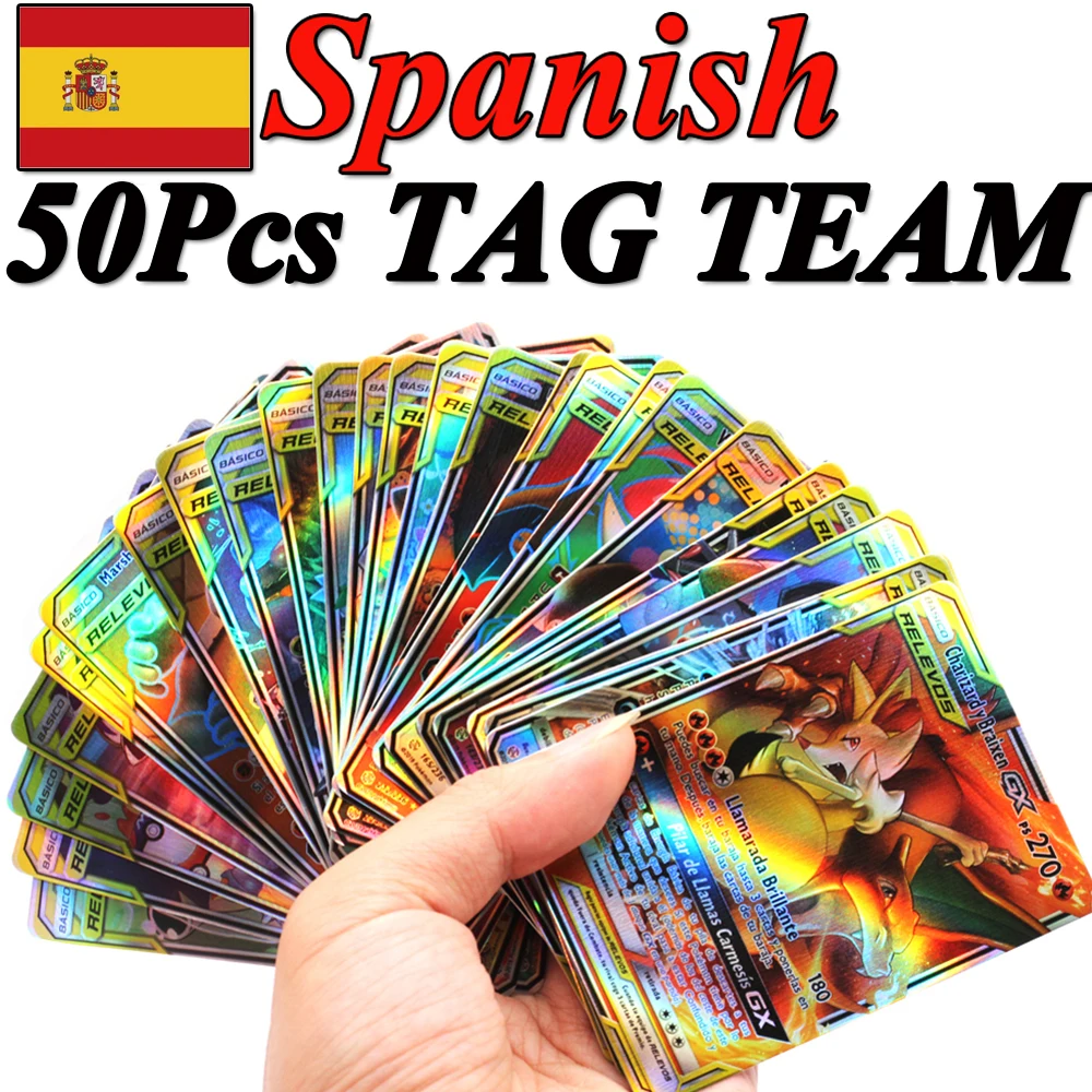 Новые карты Pokemon в испанском стиле 10-150 шт. тег команда GX VMA...