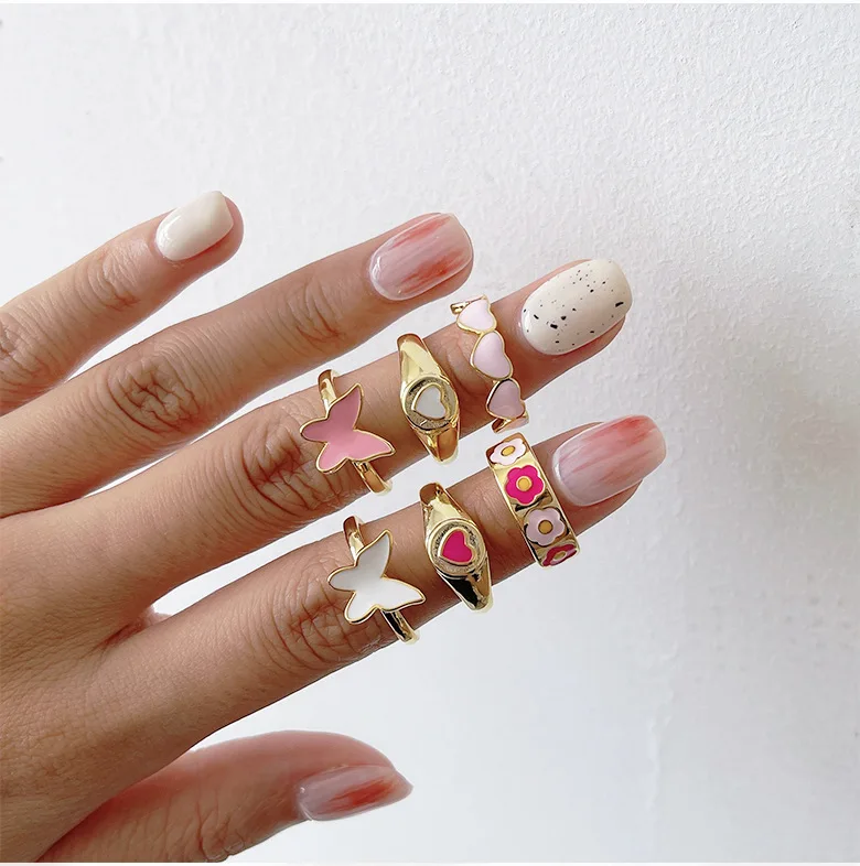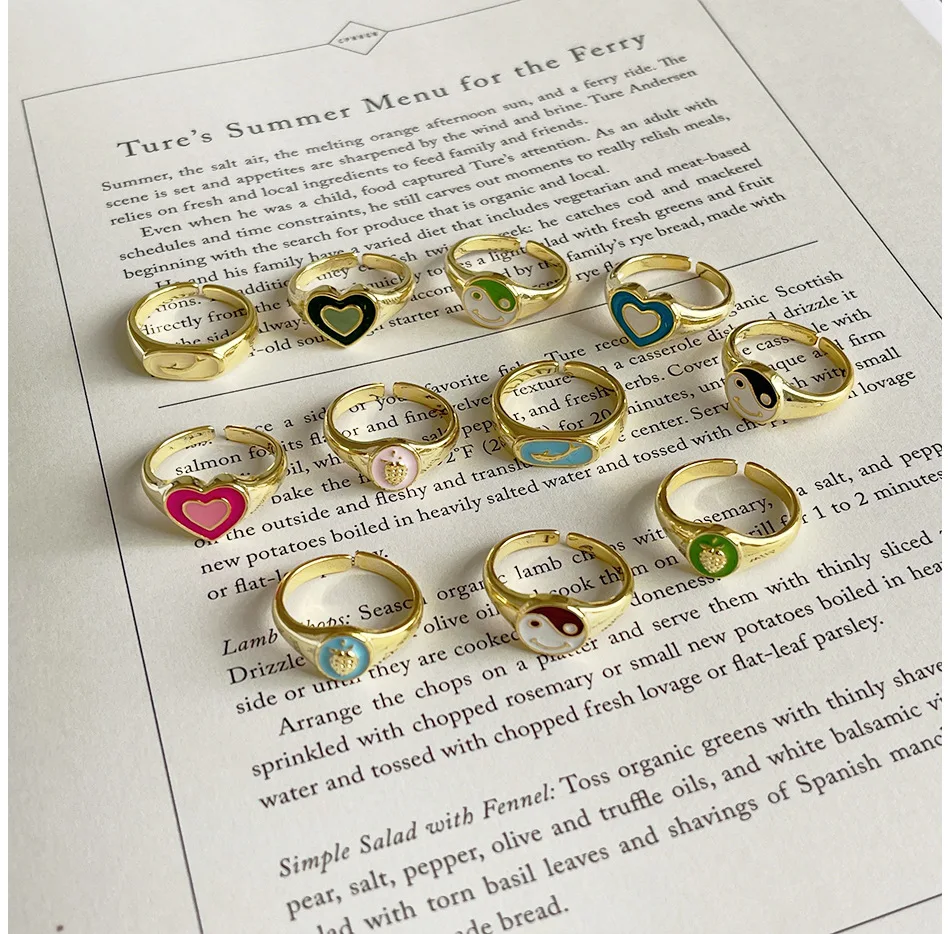 Женское медное кольцо в виде бабочки, Открытое кольцо в форме сердца из эпоксидной смолы