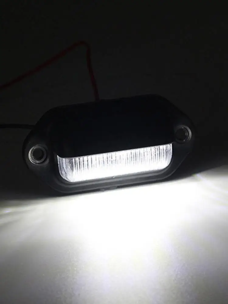1 шт. черный 6 светодиодный номерной знак лампы для грузовиков внедорожниковОписаниеСупер яркий светодиодный светильник номерного знака, обеспечивает максимальную видимость и безопасность. Может использоваться как светильник номерного знака, ступенчатый светильник, дверной светильник. Подходит для мотоциклов, лодок, автомобилей, грузовых автомобилей, трейлеров, RV, украшенное мозаикой из драгоценных камней, 12V. Особенности продукта100% новый товар высокого качества.6 светодиодный Белый ксеноновый светодиодный светильник, супер яркий светодиодный светильник обеспечивает максимальную видимость и безопасность, белый светильник, цветовая температура 6000K.Универсально подходят для всех лодки автомобили, грузовых автомобилей, трейлеров, RV, украшенное мозаикой из драгоценных камней, 12V.Длительный срок службы и низкое энергопотребление.Простота установки, прямой болт, ударопрочность.Печатная плата полностью запечатана эпоксидной смолой, чтобы обеспечить ее водонепроницаемость.Идеально подходит для освещения интерьеров транспортных средств, включая footwells, дорожки, таблицы карты и другие области.Может использоваться как светильник номерного знака, ступенчатый светильник, дверной светильник.Простой в использовании, просто закрутите винт, красный провод к положительному, черный провод к отрицательному.Водонепроницаемый дизайн, не беспокойтесь о дождливых днях. Спецификация:Тип устройства: светодиодный светильник номерного знакаМатериал: ПоликарбонатСветильник источник света: светодиодныйЦвет корпуса: черныйСветильник Цвет: белыйЦветовая температура: 6000KМатериал: ПоликарбонатНапряжение: 12 ВМощность: 1,8 WТок: 0.3AПодключение: 2 проводаУстановка: 12v лодки, самолеты, автомобили, RV, мотоцикл и грузовикФункция: номерной знак/шаг/дверные огниРазмеры: 2,6 (L)x1.3(W)x0.87(H) дюймовПроводка:Черный-отрицательныйБелый-положительный Посылка включает в себя:1x светодиодный светильник номерного знака.2 винта.