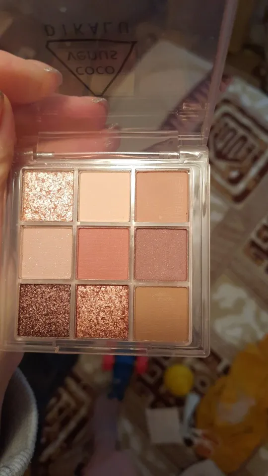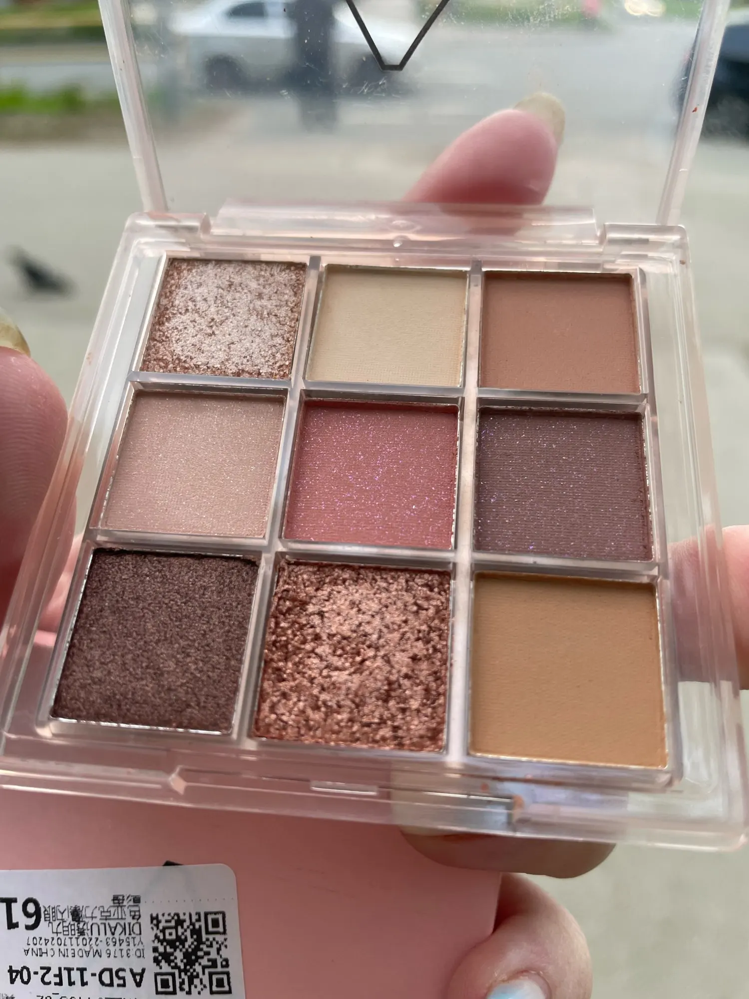 Маленькая палеточка, но цвета приятные спокойные. Тени неплохие ложатся и держатся в течение дня неплохо. Больше понравилось оттенки с блеском. Доставка долгая, без отслеживания. на удивление тени пришли целые, хотя и были упакованы только в картонную коробочку.