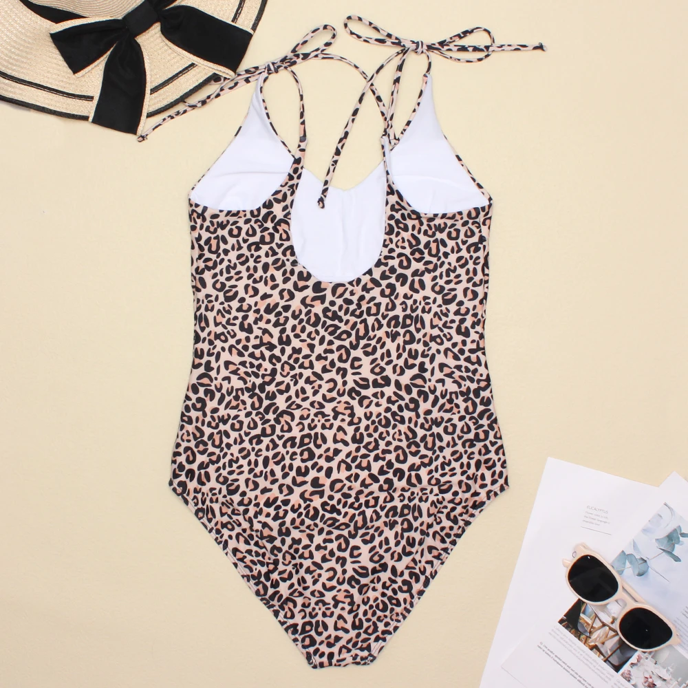 Женский слитный купальник в полоску, с леопардовым принтом, размеры s-xxl