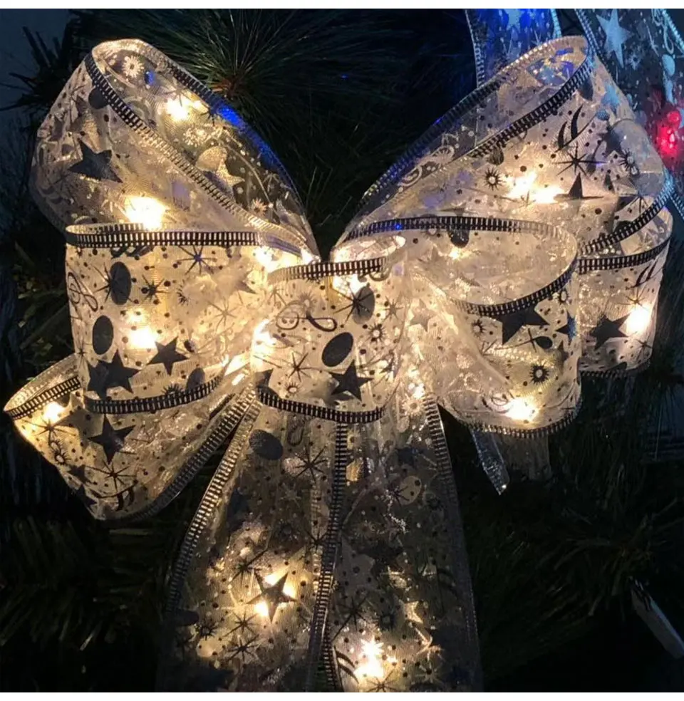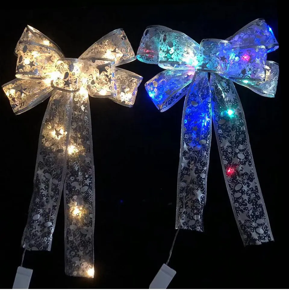 Золотистые и Серебристые двухслойсветильник рлянды, рождественские Ленточные банты со светодиодами, украшения для рождественской елки, новогодние и рождественские украшения для дома