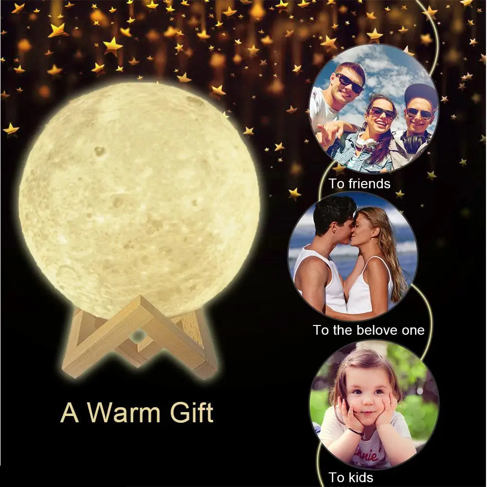 Перезаряжаемая лампа в форме Луны, 2 цвета, 3D светильник ный выклю...