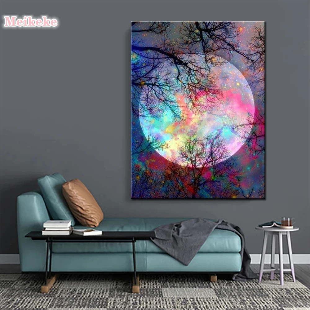5D алмазная краска, нарисованные веточки и луна, 3D Алмазная краска, пейзаж, полностью круглая стразы, картина, вышивка, алмазная краска, домашний декор