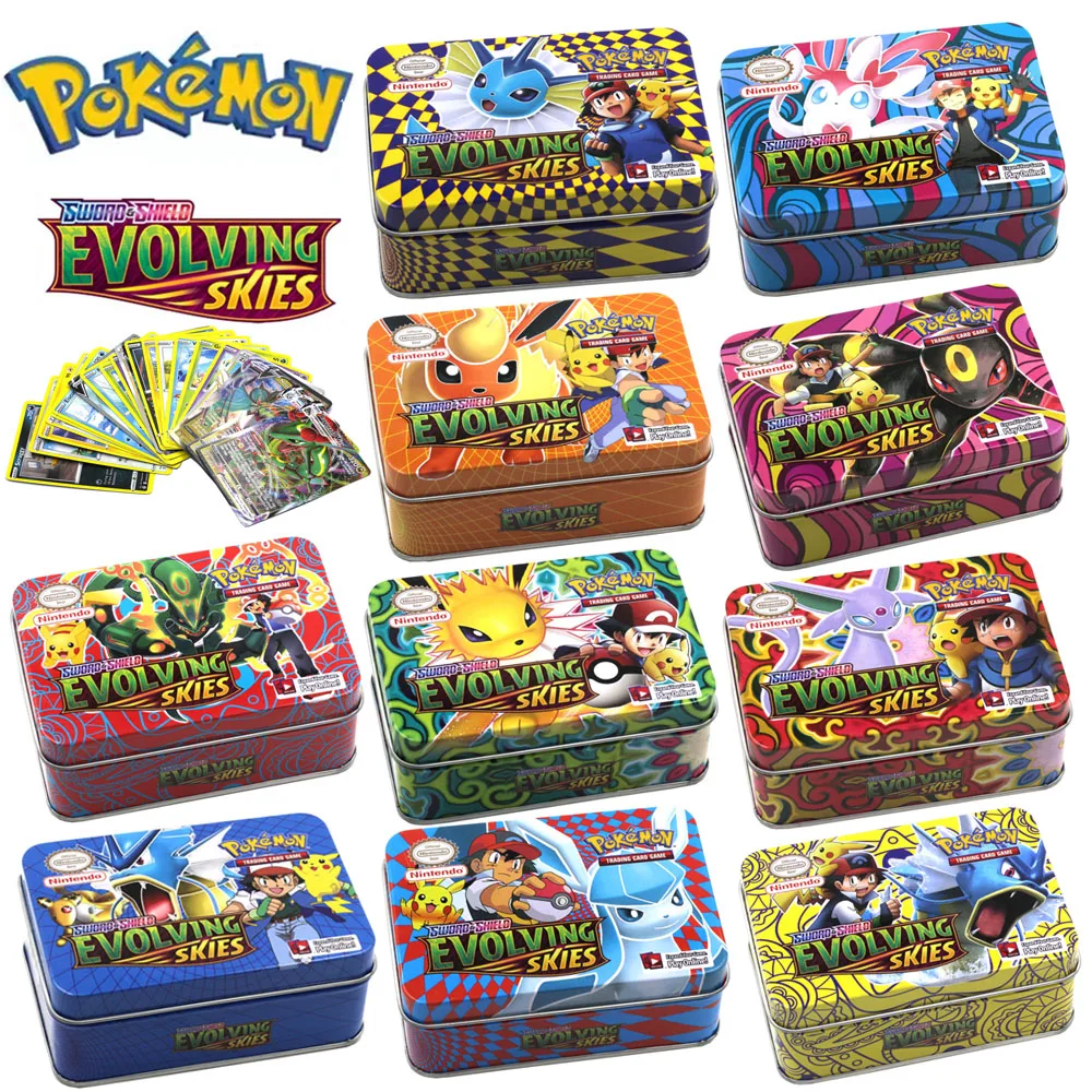 Аниме 42 шт. карты покемона железная металлическая коробка солнце и...