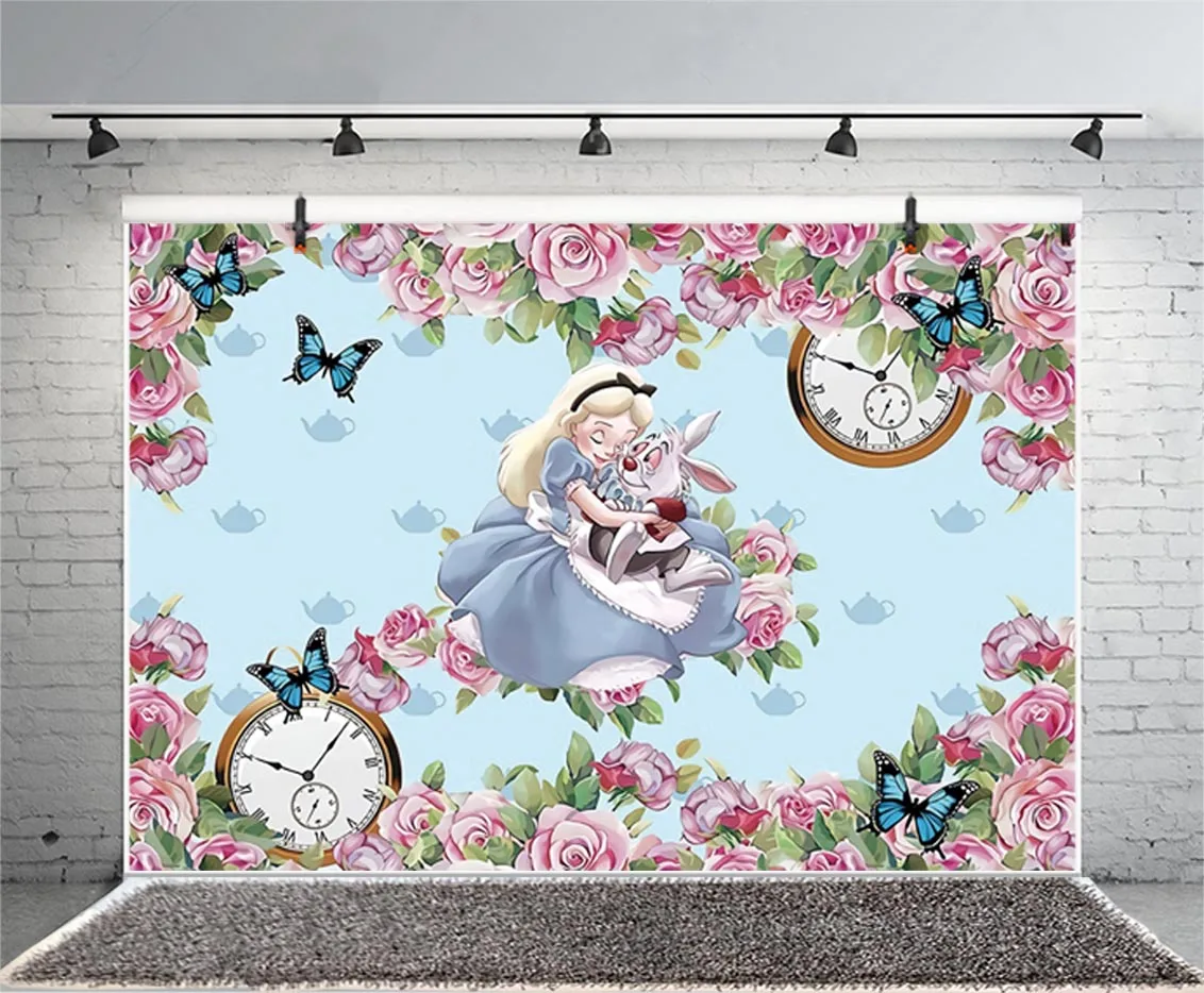 Фон для фотографирования с изображением Алисы в стране чудес, аквар...