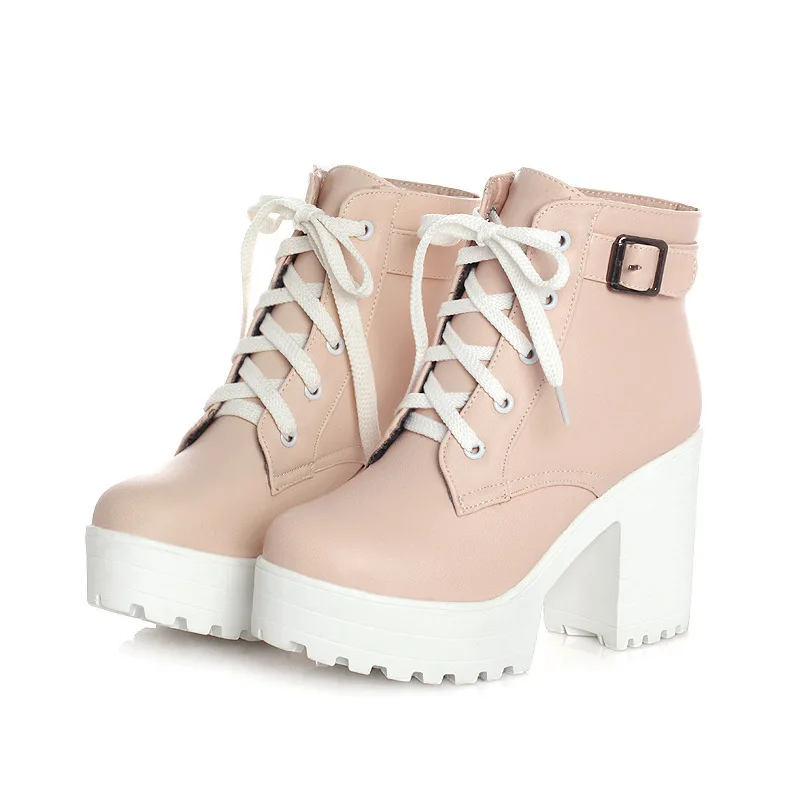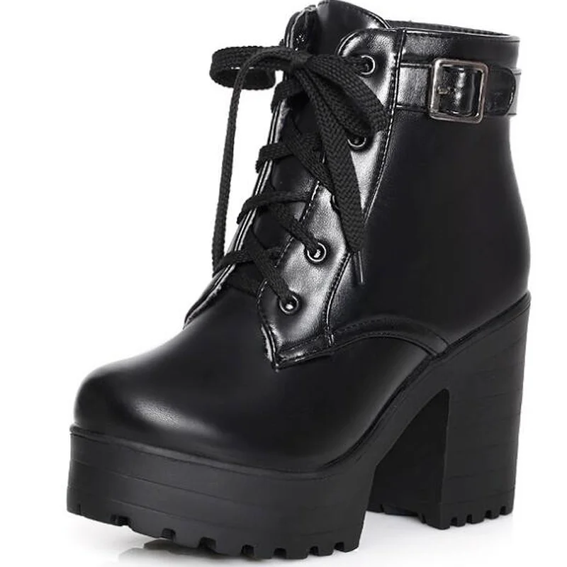 2021 большие короткие сапоги на толстом каблуке со шнуровкой