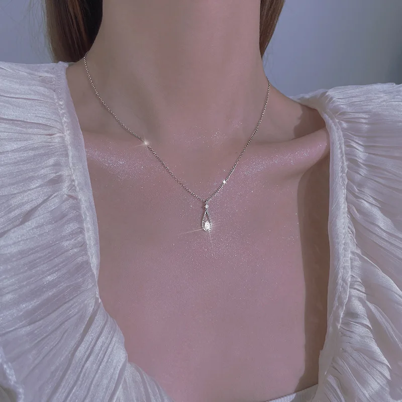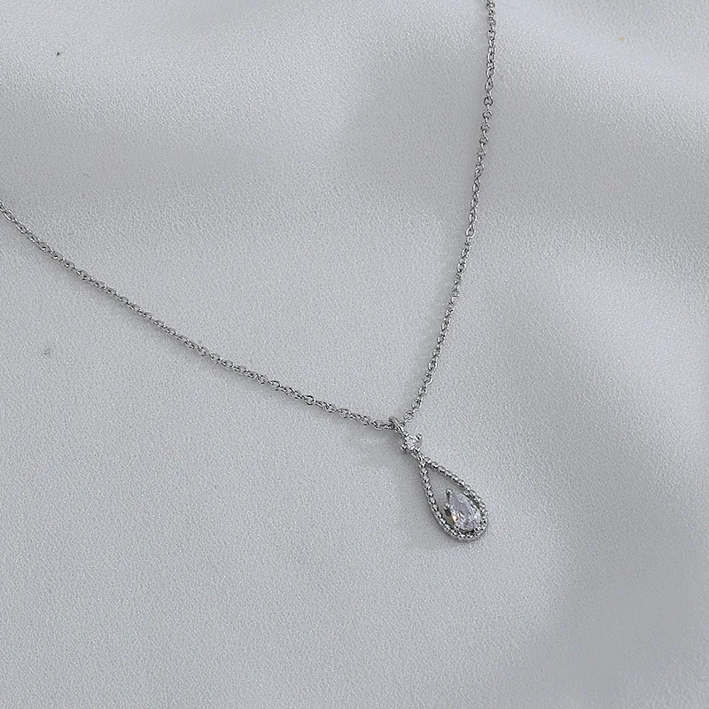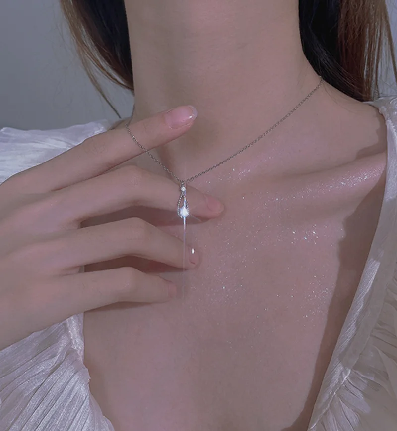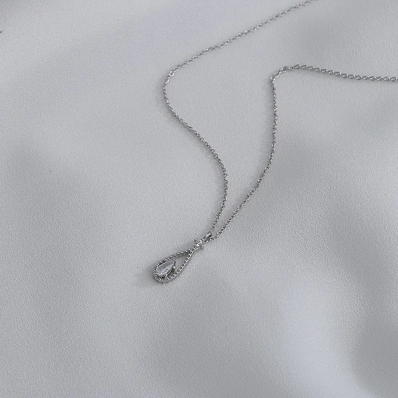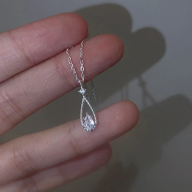 Геометрические Ожерелья CIAXY 925 в форме капли воды для женщин, циркониевая подвеска, регулируемая цепочка до ключиц, модные ювелирные изделия серебряного цвета