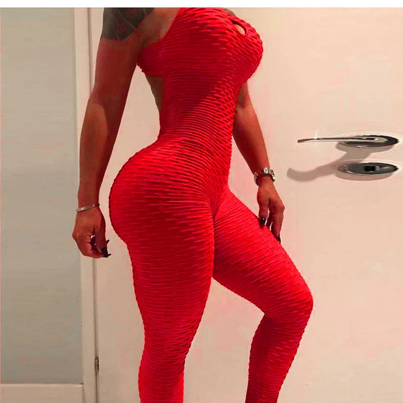 Пикантная спортивная одежда с открытой спиной, женские Однотонные эластичные костюмы для фитнеса и йоги с лямкой на шее, бесшовная одежда пуш-ап для спортзала, Комбинезоны для тренировок