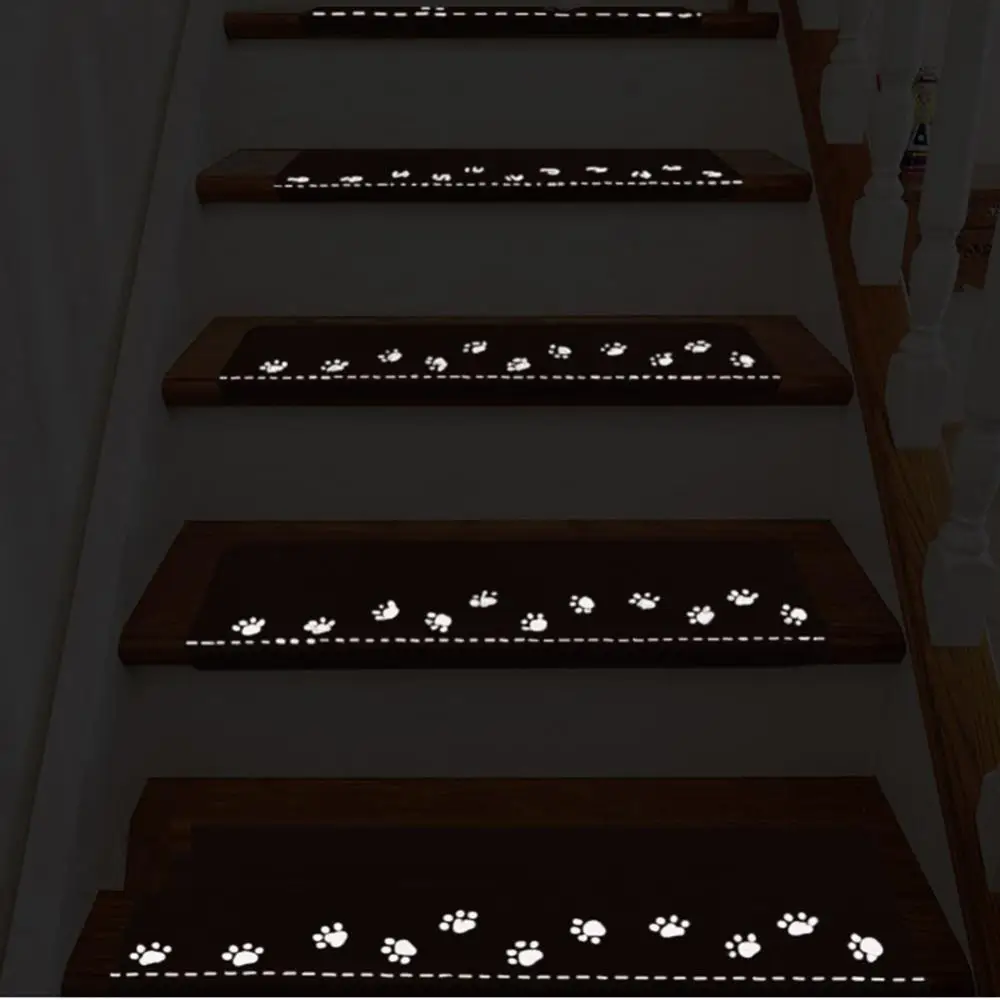 Самоклеящийся милый светящийся коврик с узором лапы для лестницы
