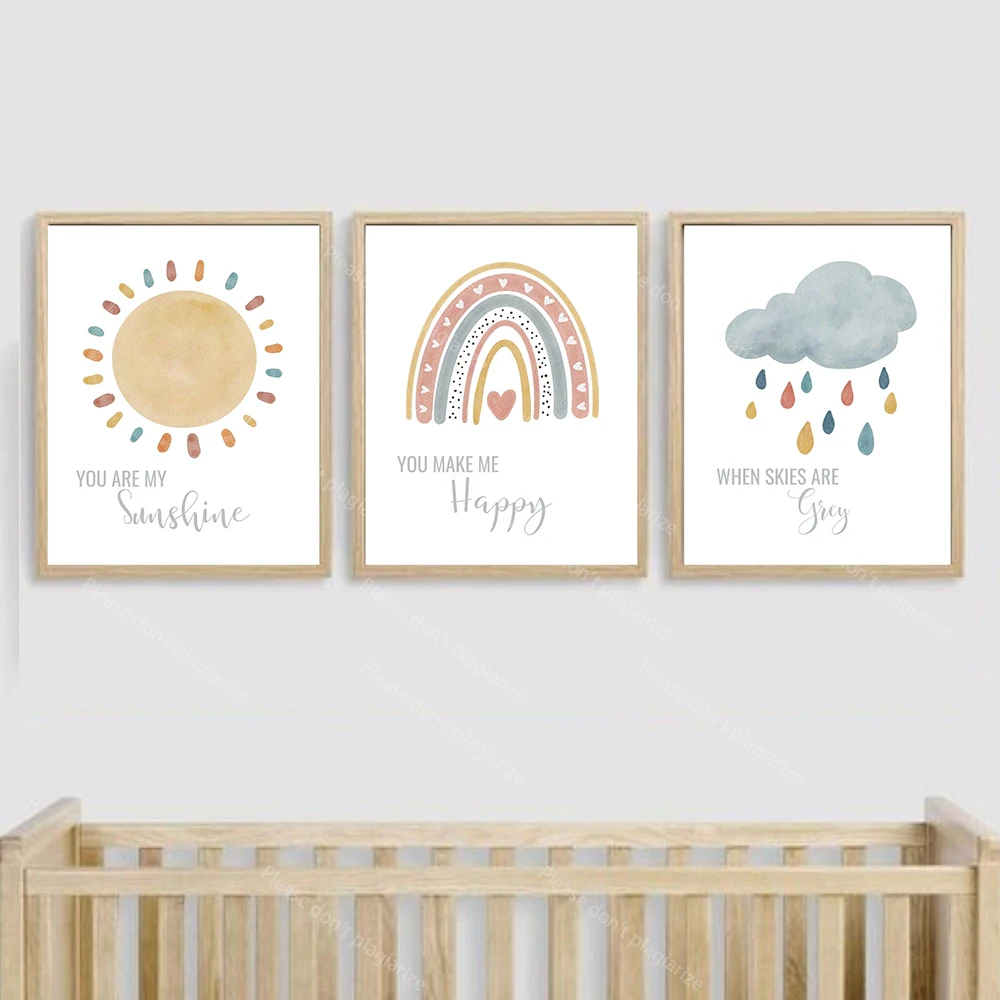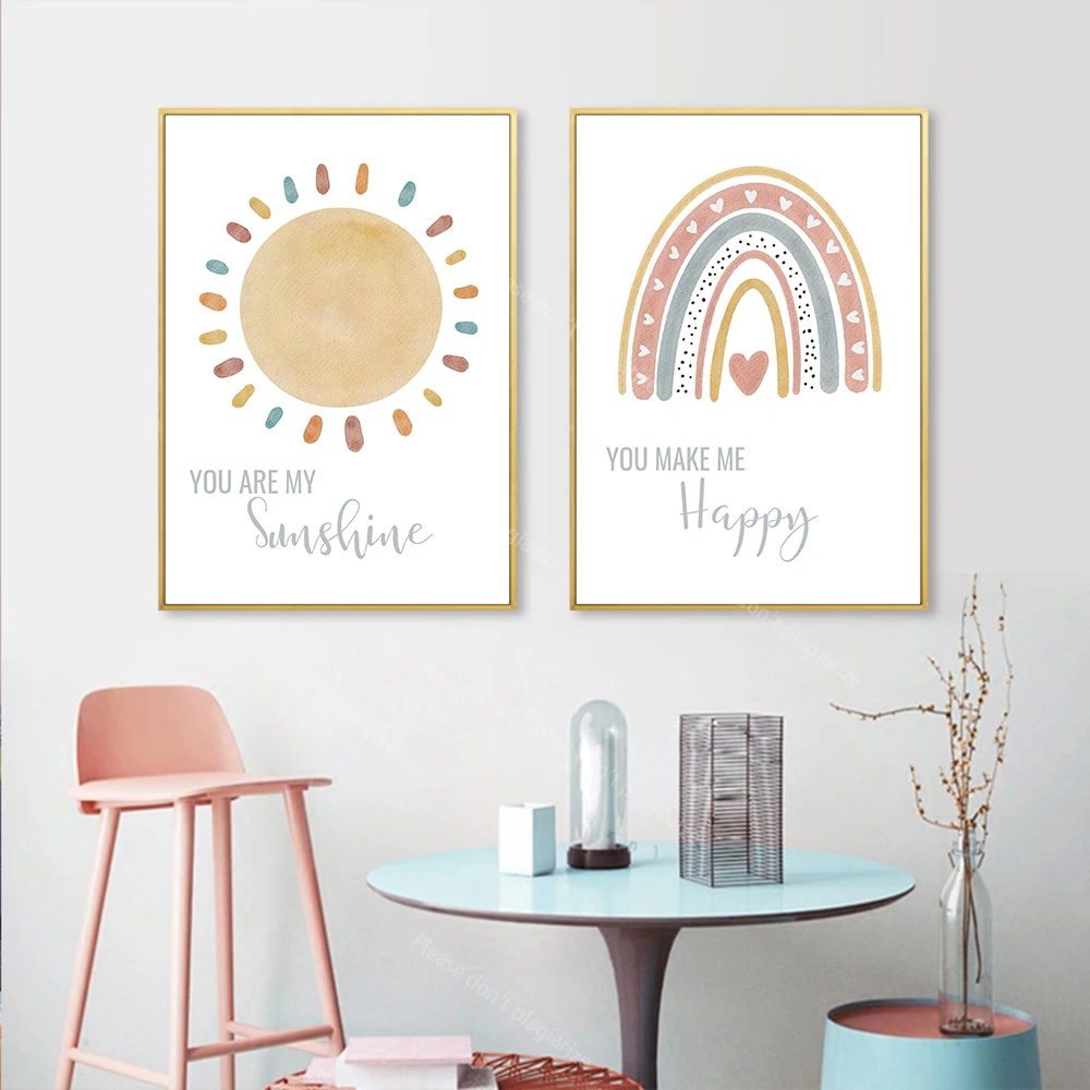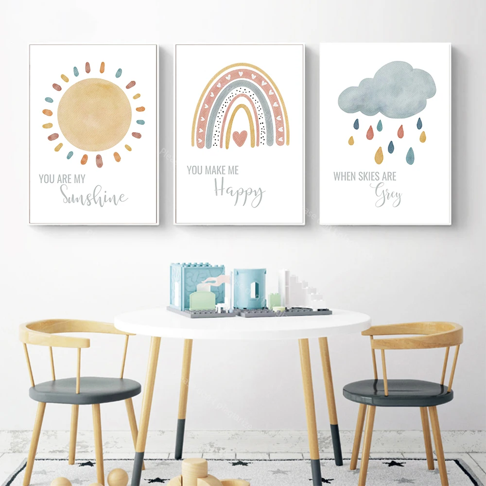 Boho Мультфильм солнце облако Радуга декор для детской комнаты холст живопись настенные художественные картины плакаты принты для детской комнаты домашний декор