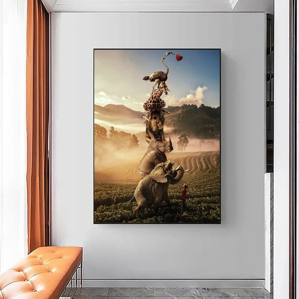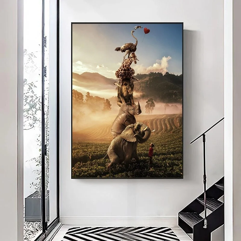 Забавная Картина на холсте, сидящая на дереве, пейзаж пустыни, слон...