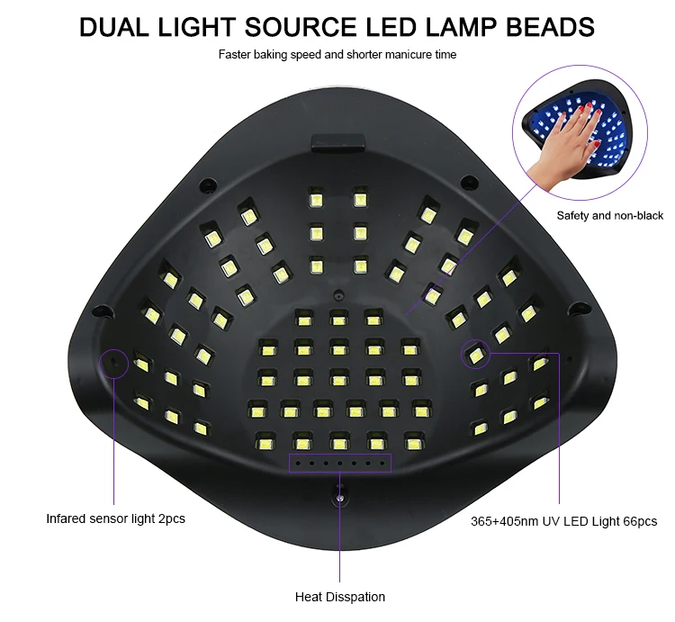 280 Вт, Ручная Сушилка для ногтей 66 светодиодов, быстросохнущая лампа для всех видов гель-лака для ногтей с инфракрасным датчиком, машинка для маникюра и салона ногтей