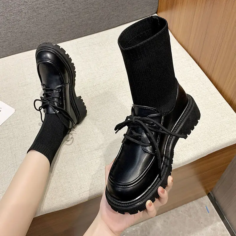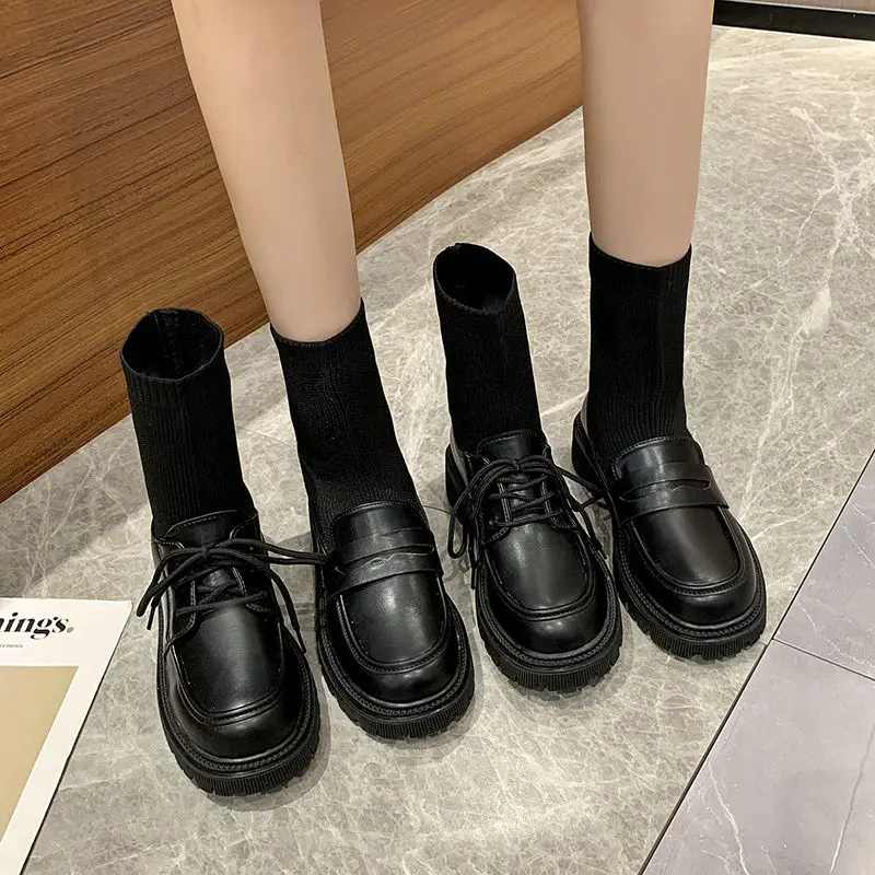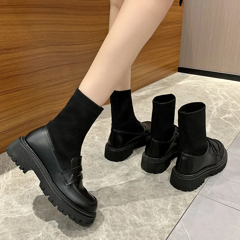 Носки и короткие сапоги женские, новинка 2021, вязаные осенние толстые сапоги-носки, весенне-Осенние эластичные сапоги-носки в британском стиле
