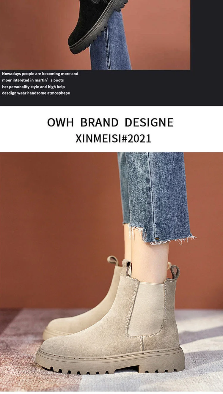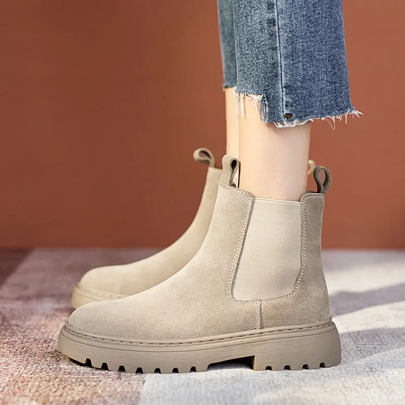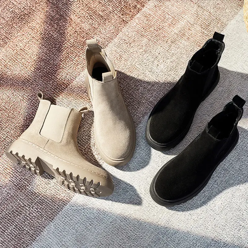 Ботинки-челси женские замшевые осенние на платформе, без застежек