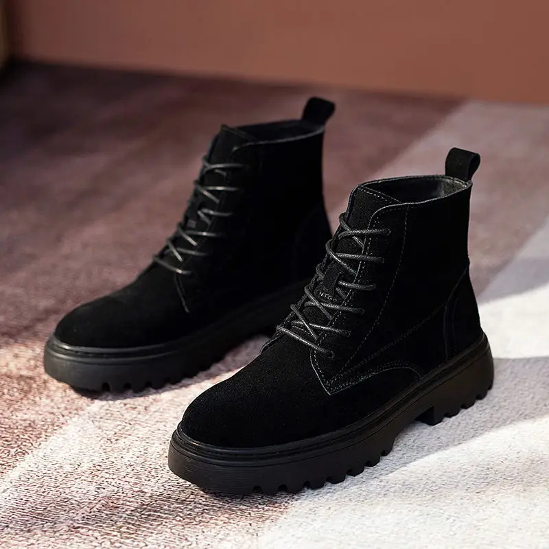 Женские замшевые ботильоны на платформе, короткие ботинки на плоско...