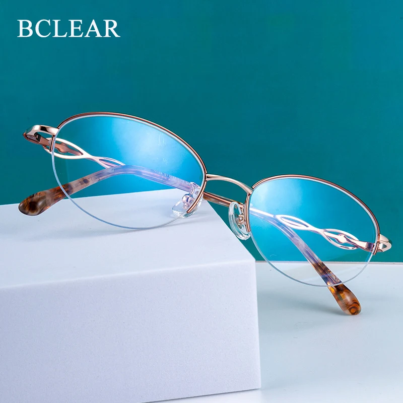 BCLEAR Модные женские Полуободковые очки овальной формы из сплава оправа для очков для коррекции близорукости оправа для очков по рецепту оптические очки для женщин