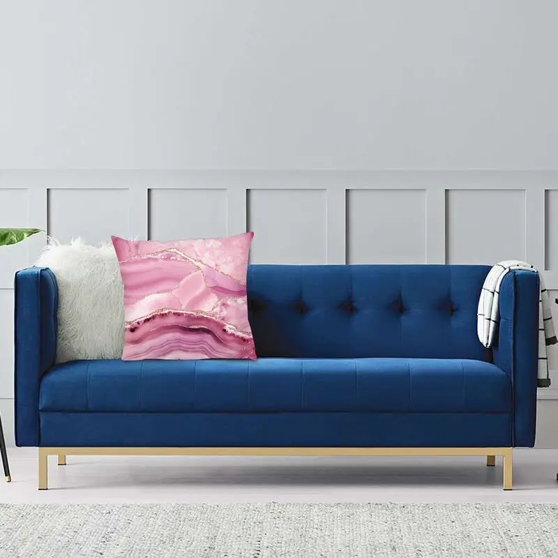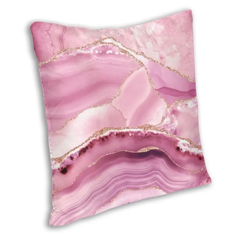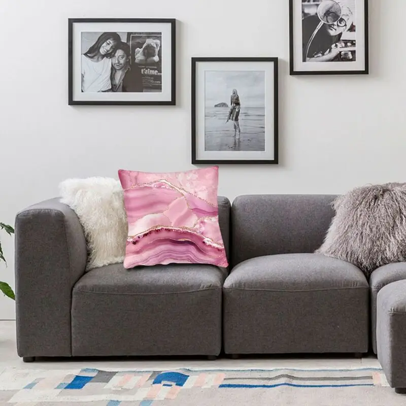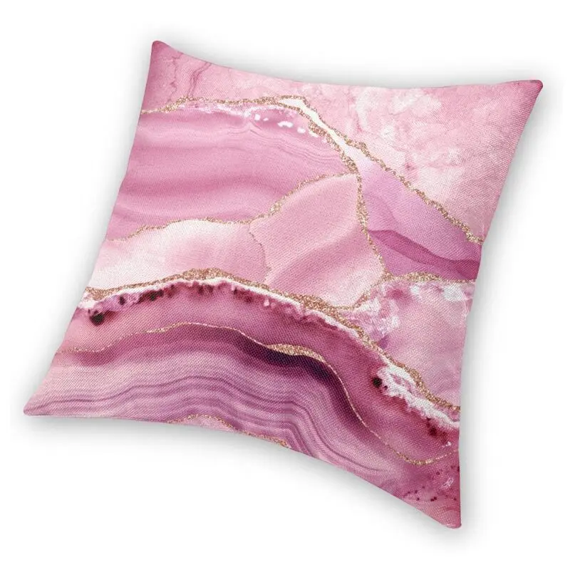 Наволочки для подушек с изображением розовых и золотых мраморных пейзажей, элегантный современный квадратный чехол с абстрактными драгоценными камнями для дивана, гостиной, 45x45