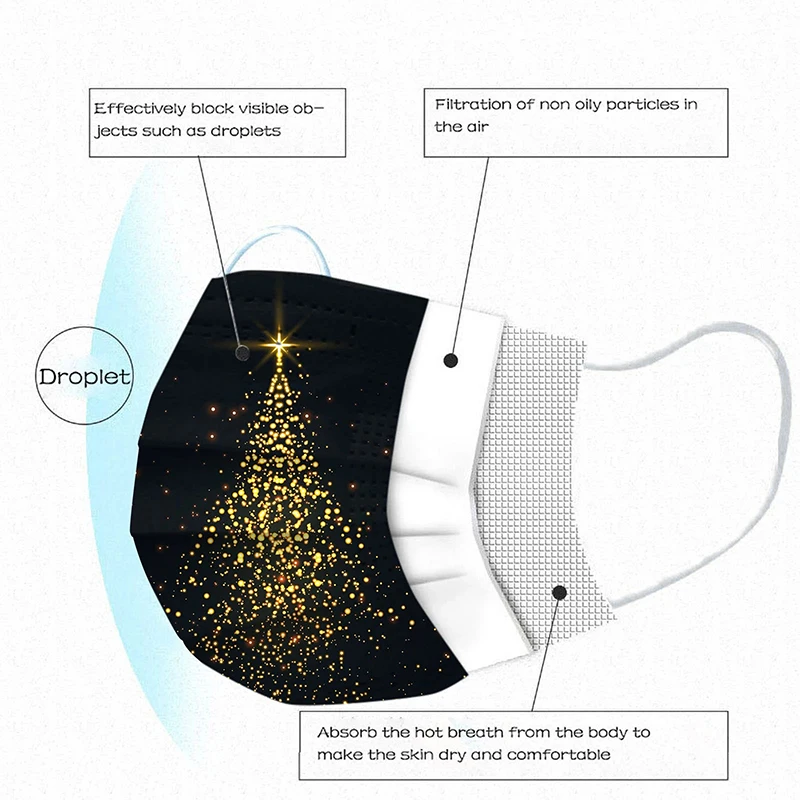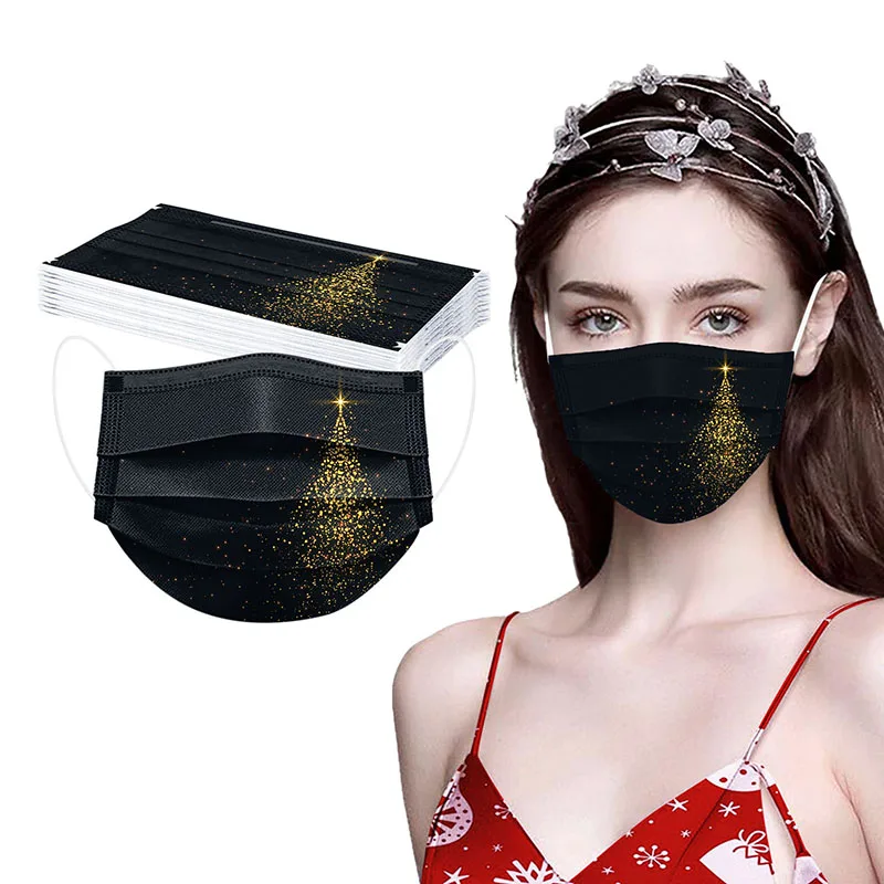 50/100 шт одноразовые взрослые рождественские маски маскарильяс унисекс с принтом золотого лося черная маска 3 слоя маскарадный костюм на Хэллоуин